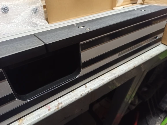 Engraving Machine or trimming machine on the console. Two grooves are made at the left and right ends respectively. Slot depth: 13mm, Slot widith: 45.1mm.