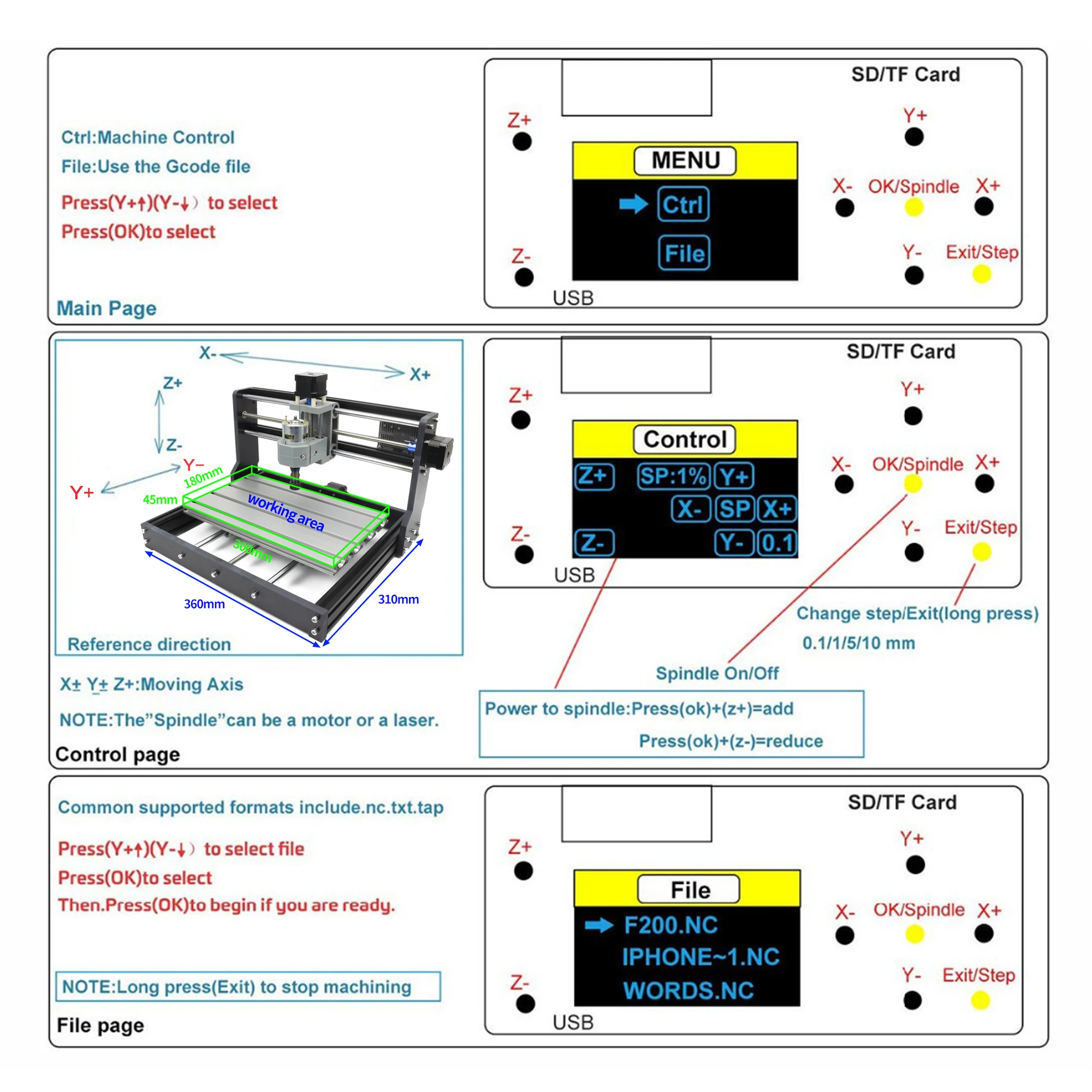 Spindle: 775 spindle motor (12-36V) 24V: 7000r / min, 36V: 9000r / min