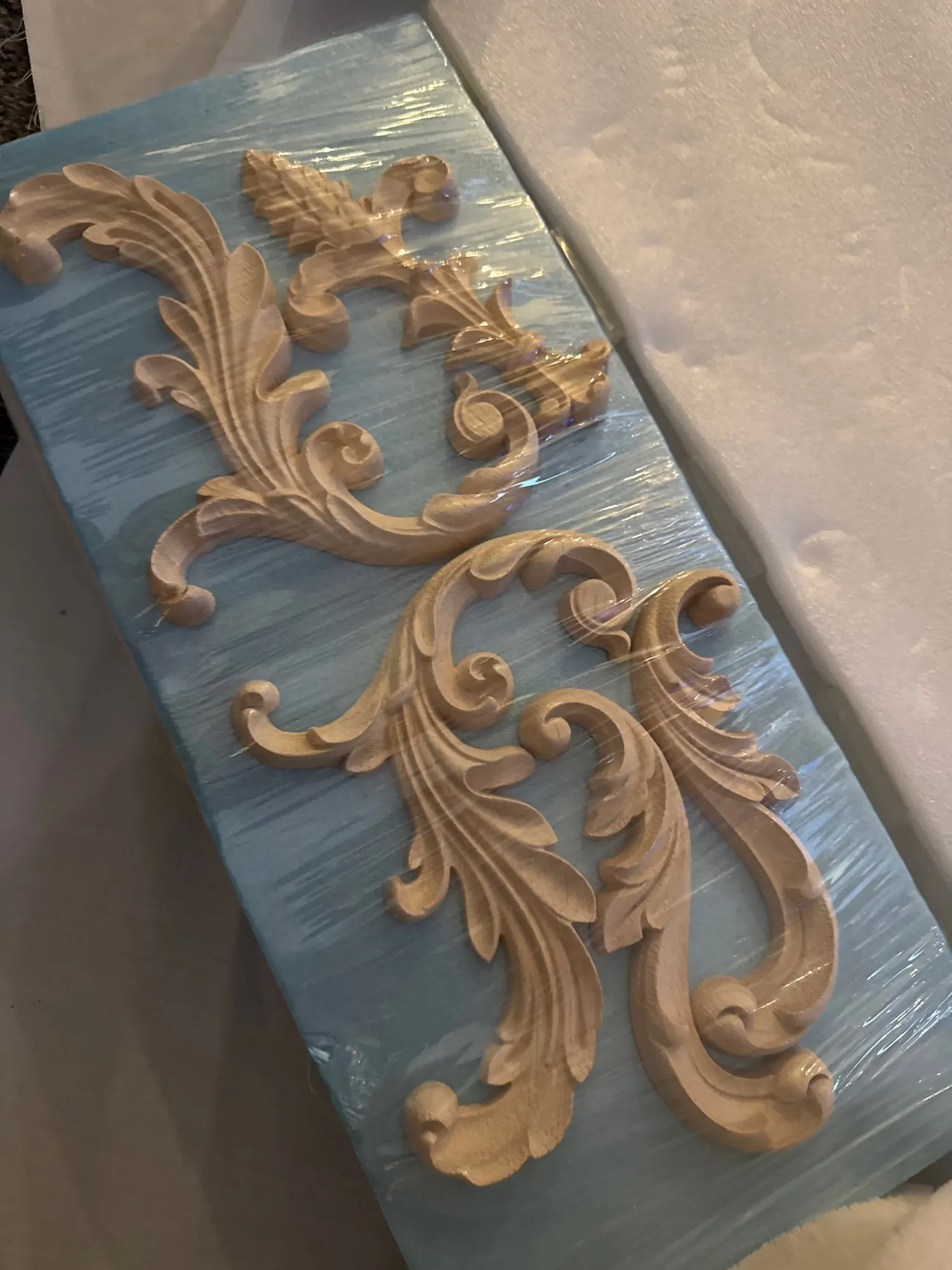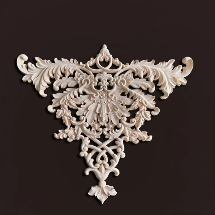 Europe Wood Appliques Molding Decals for Furniture Home Decor Carving Onlays Flower Background Wall Decoration Wood Figurines