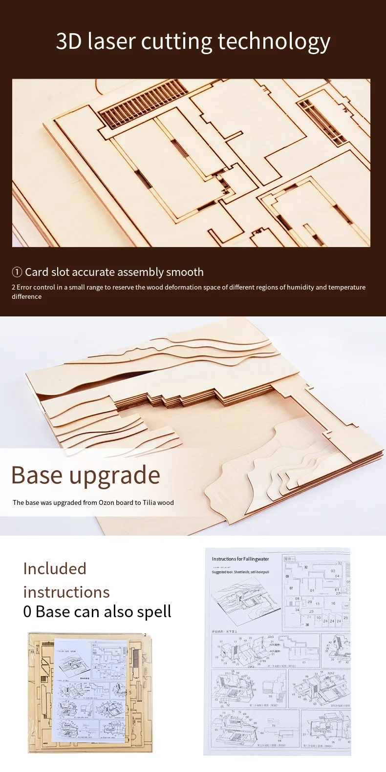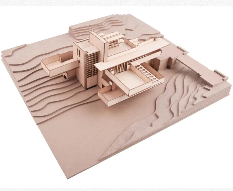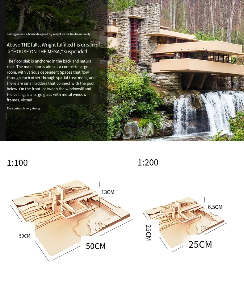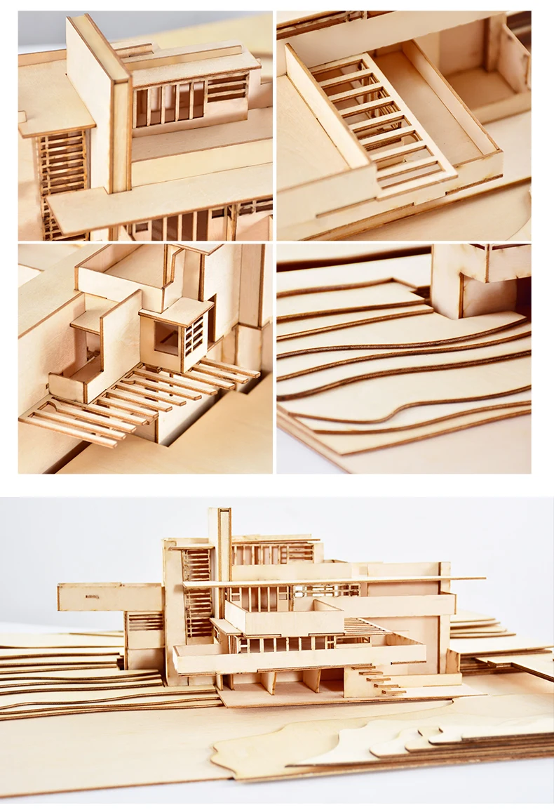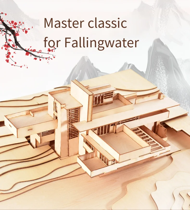 Exquisite Miniature 1:200 Fallingwater Villa Architectural Wooden Block DIY Scene Building 3D Wood Puzzle Model