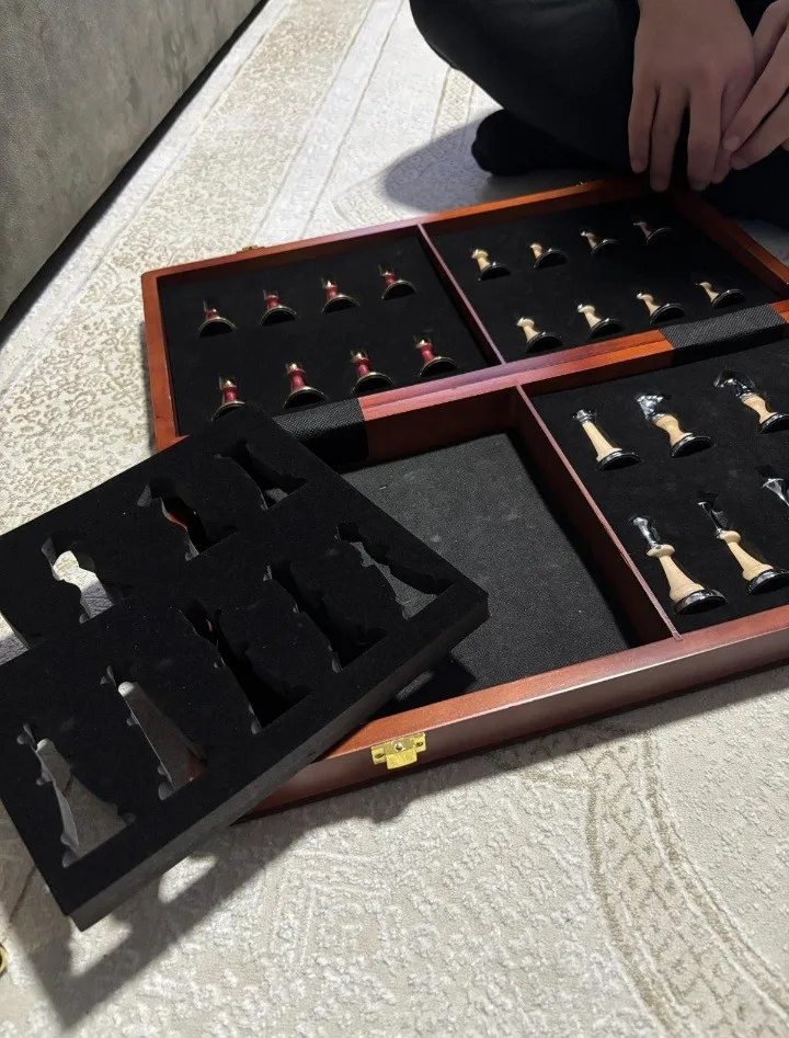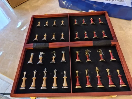 Extra-large chess 45cm/ 17.7-inch wooden folding chessboard, high-end metal large zinc alloy + wooden chess pieces high-end gift