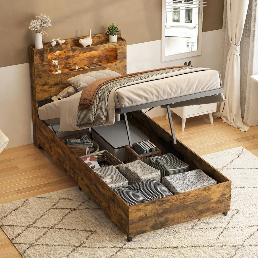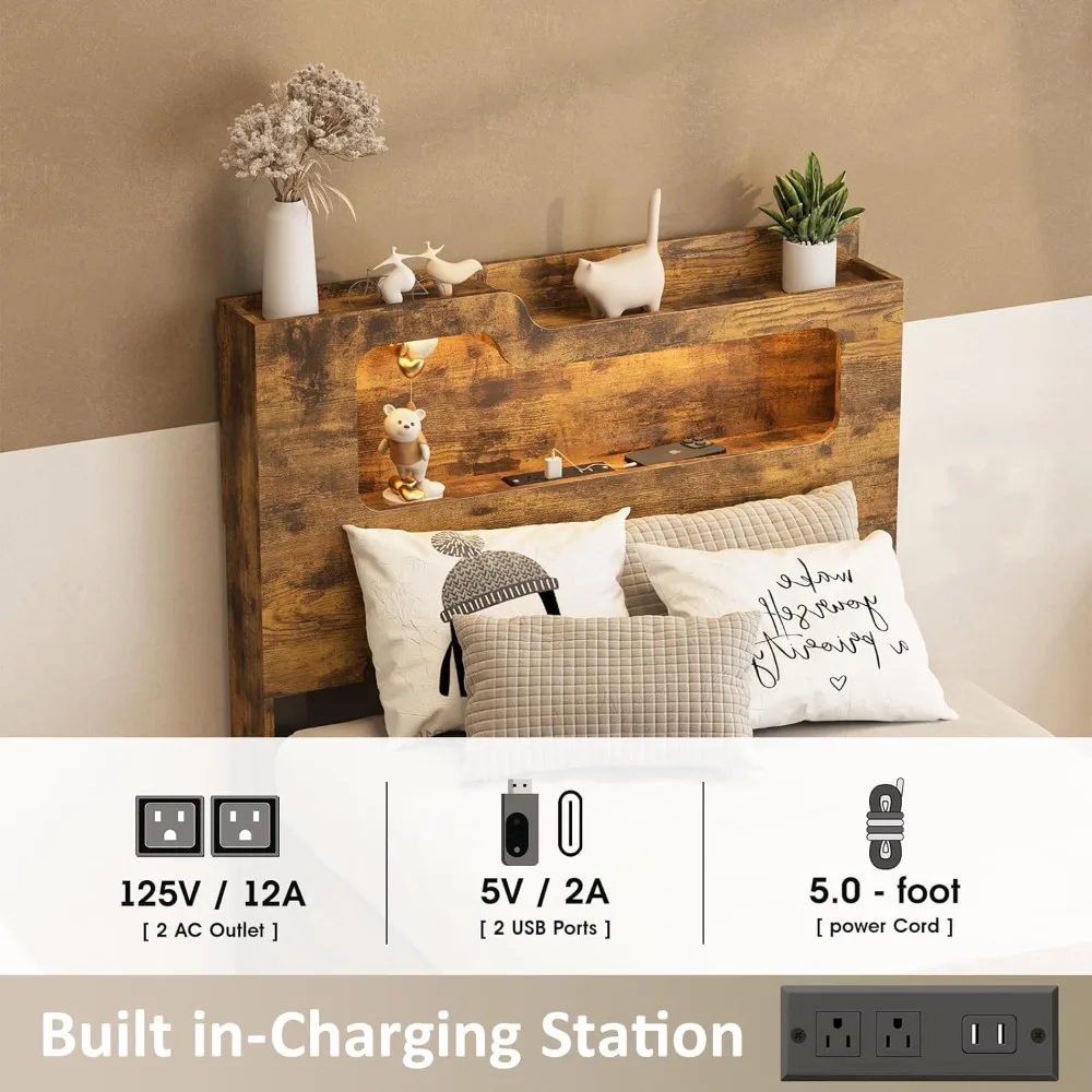 - 【Versatile Storage Compartments】- This bed frame features a 2-tier headboard with lift-up storage, providing ample space to store books, magazines, and other essentials. The charging station integrated into the design offers a convenient place to charge your devices, ensuring a clutter-free nightstand.