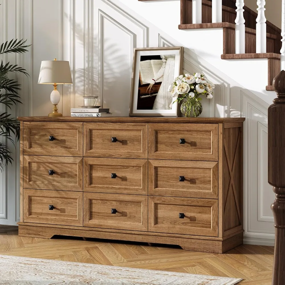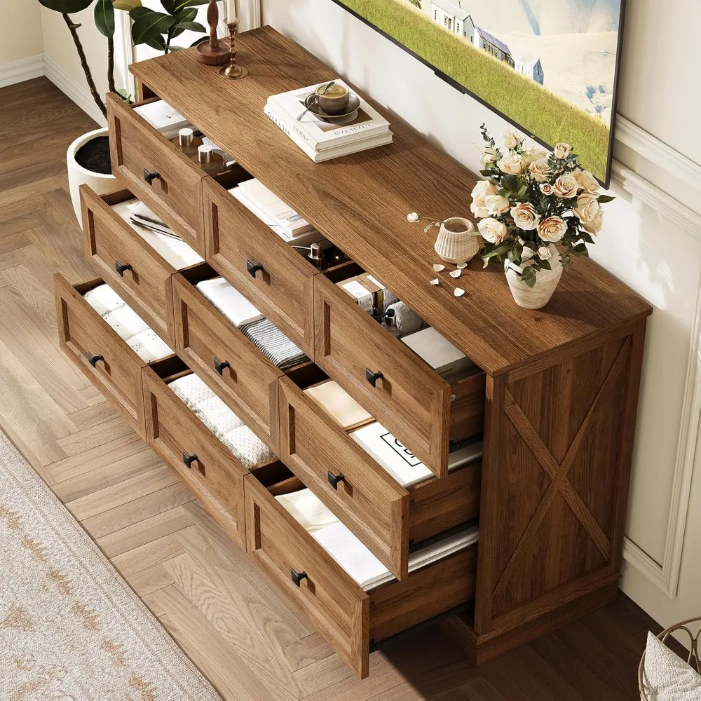 • Multi-Usage Cabinet: Wood dresser chest of drawers used as a dressing table, TV Stand, Entry table, etc. You can place the 9 drawers dresser in your bedroom, living room, hallway or anywhere you like. Super suitable as a TV cabinet for your living room