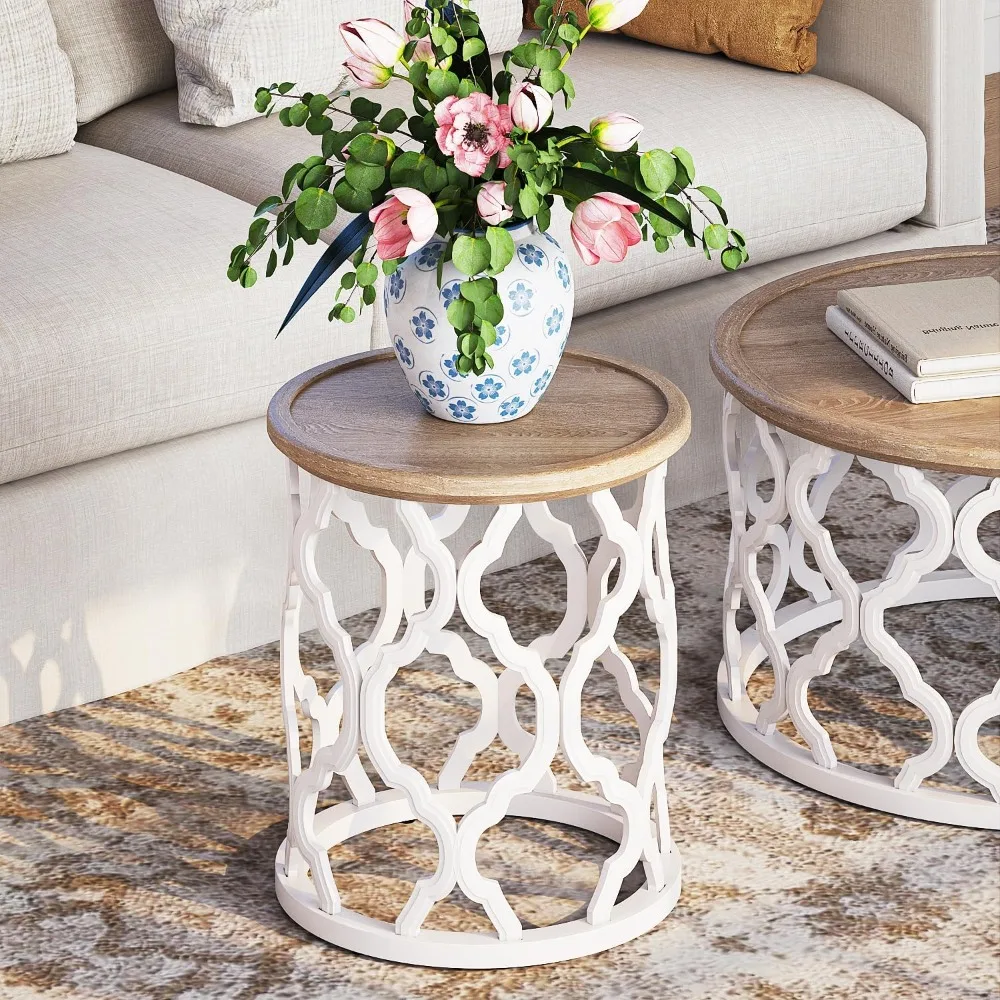 • Farmhouse Side Table: Our rustic farmhouse end table marries style and practicality. The spacious top tray table keeps everyday essentials within easy reach, while the curved motif frames add an elegant style to your space