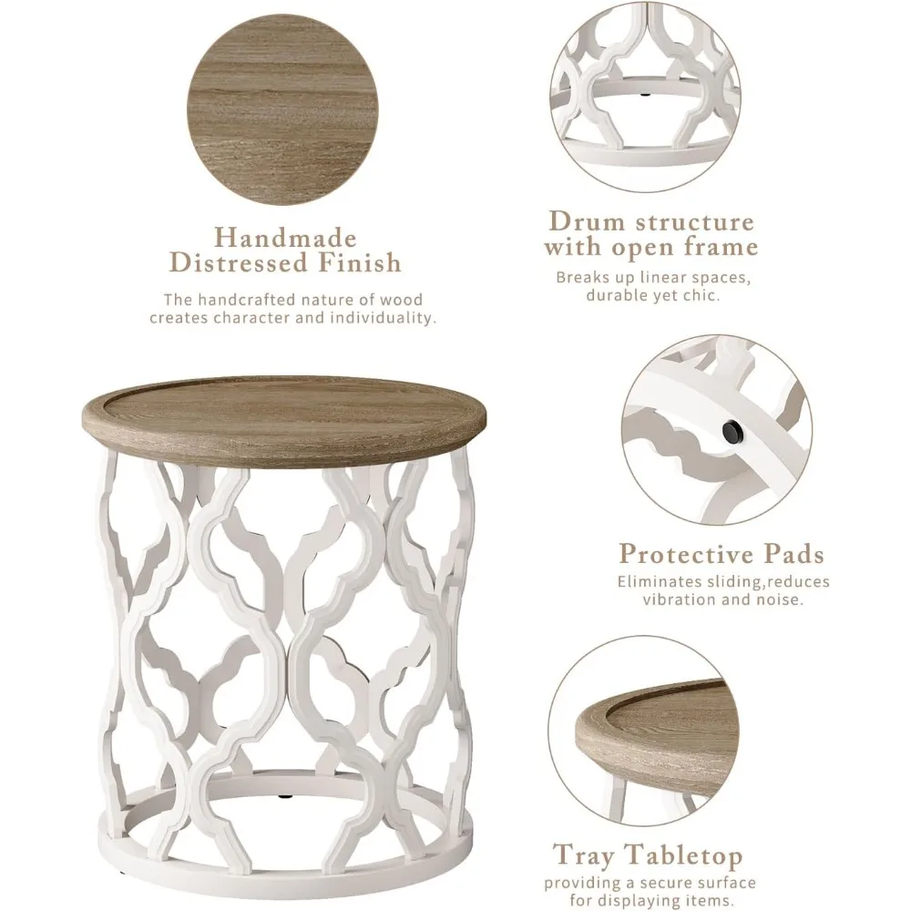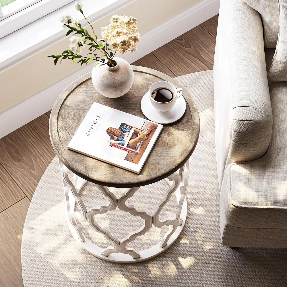 • Designer Style: This rustic small side table features with distressed wood top finish that outfits the openwork wood drum frame in a natural finish for a hint of glamour, while geometric accent tables offer even more eye-catching appeal. This circle end table effortlessly complements various interior aesthetics