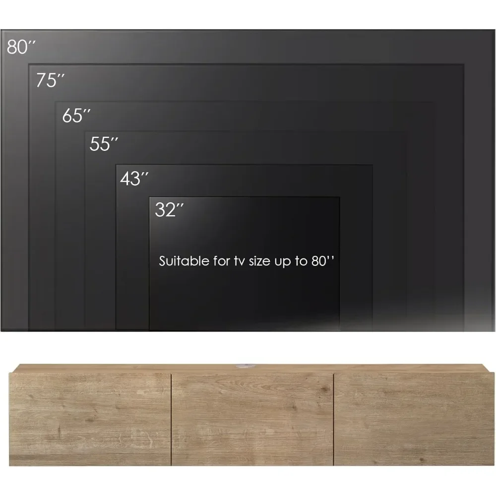 • 【Sturdy Construction】 Featuring a robust floating entertainment center design, our stand holds up to a 85 inch tv, making it an ideal floating tv stand 75 inch, or even a 85 inch tv stand.