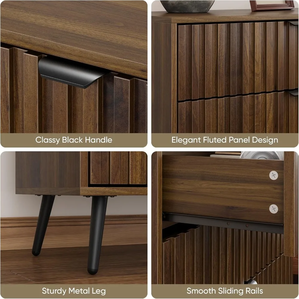 - Fashion Design: The fluted 4 drawer tall dresser is crafted using a special process, featuring a grooved wave panel paired with a natural walnut wood veneer design, making it unique and elegant. It is equipped with metal handles, and the smooth metal rails allow the drawers to be opened and closed effortlessly and silently