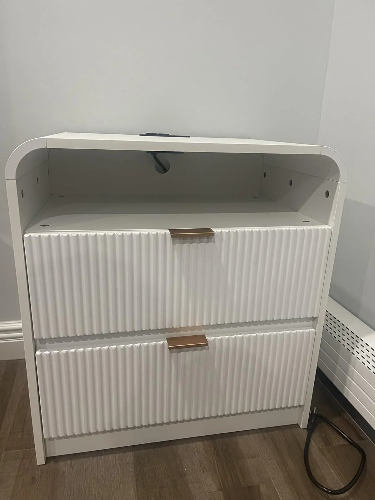 • 【More Stability & Safety】Crafted with durable, scratch-resistant MDF and P2-certified engineered wood. 2 drawers end table reinforced base construction ensures rock-solid stability, keeping the dresser wobble-free even when fully loaded. Each drawer pairs metal handles and built-in slide rail, giving you buttery-smooth opening and closing. A reliable and sturdy piece of furniture.