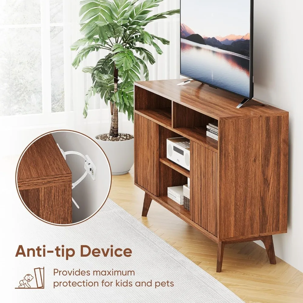 - Fluted TV Stand- This TV stand with storage combines modern and bohemian styles with a unique vertical wood slat design that creates a warm, elegant feel. Whether you use this TV console alone or with the buffet cabinet and coffee table from the same series, you can easily create a living room with both practical storage and elegance, adding a lot of color to your decoration