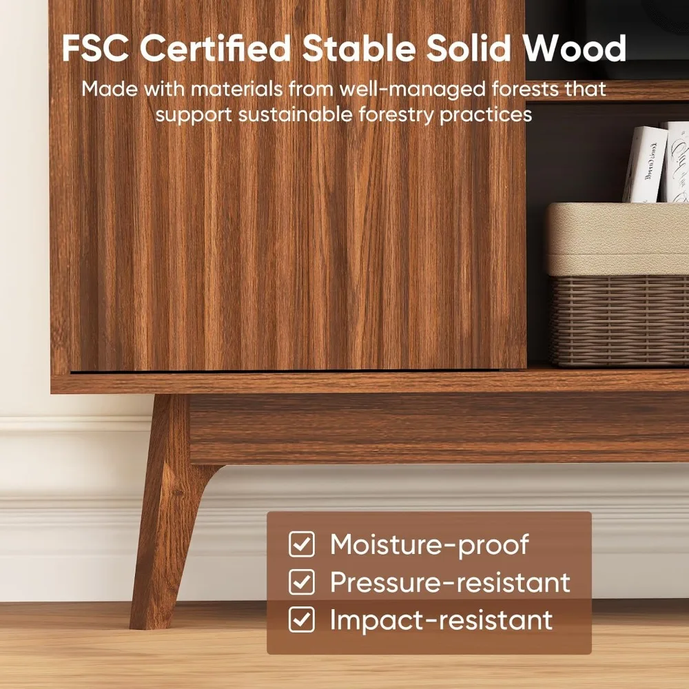 - FSC Wood TV Stand - The living room TV stand is made of FSC-certified stable solid wood. The selected wood comes from well-managed forests and meets strict environmental protection and sustainable development standards. The solid wood television stands has excellent stability, durability and moisture resistance. It will not deform or corrode after long-term use. It is easy to clean and maintain, and is an ideal high-quality choice in modern homes