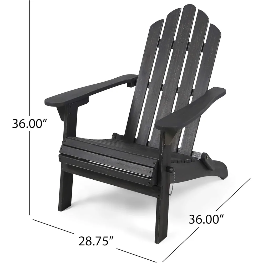 This item features a wooden Adirondack chair that is both weather resistant and durable. Crafted from acacia wood, known for its solid and heavy frame, this chair is designed to withstand the elements and resist wear and tear. The chair's design includes slanted seating, straight armrests, and a sloped backrest, with iconic slat paneling that gives it a classic look. For convenience, the chair is foldable, allowing for easy storage or transport. The dimensions of the Adirondack chair are 29.00 inches wide, 35.50 inches deep, and 37.00 inches high.