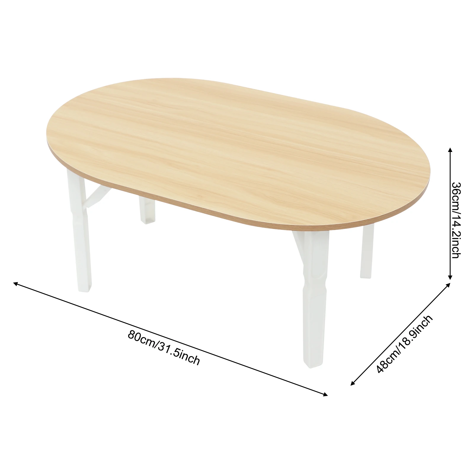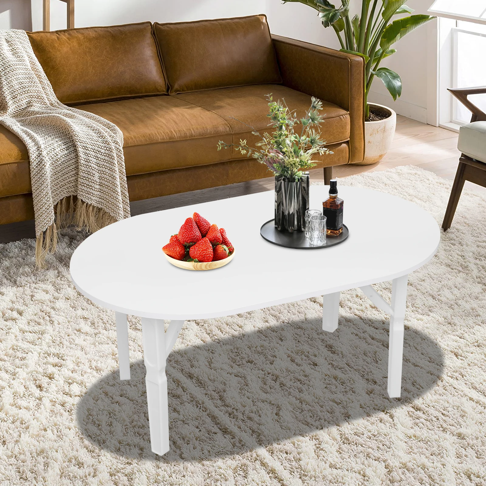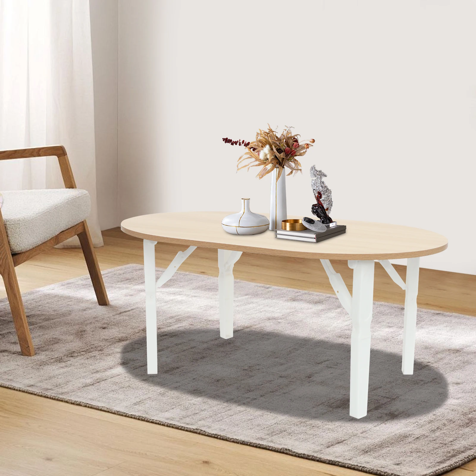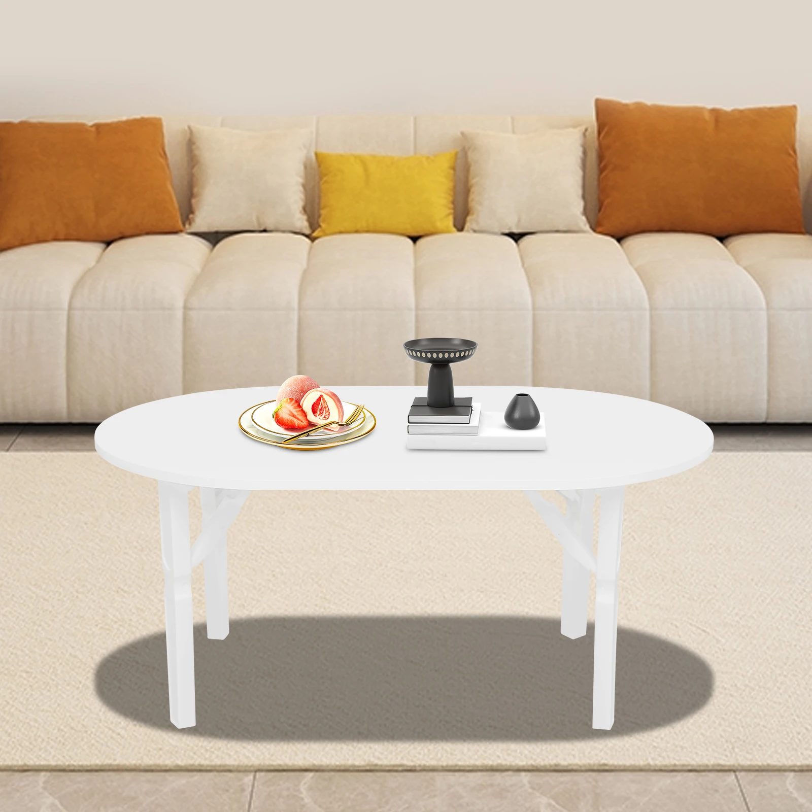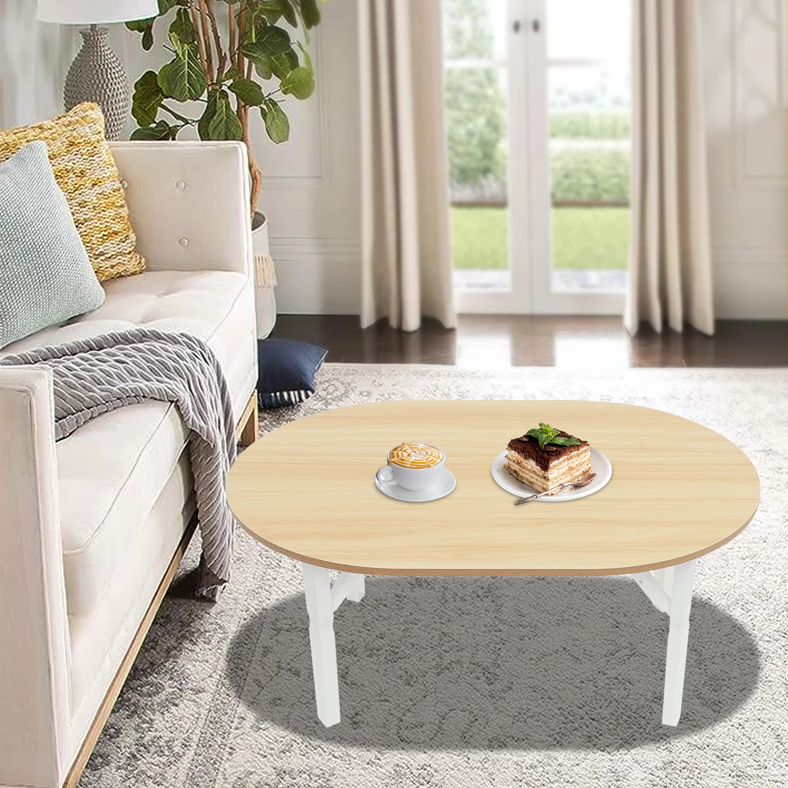Upgrade your space with this sleek, foldable coffee table—perfect for small apartments, cozy corners, or as a convenient side table wherever you need it. With a spacious 31.5 x 18.9-inch oval top, it easily holds your coffee, books, tablet, or decor. The sturdy self-locking legsopen with a simple "click" for instant use, and fold flat when not needed—so you can stash it behind the couch, under the bed, or in a closet in seconds. Made from durable engineered wood with smooth edges for safety, it’s ready to use right out of the boxand wipes clean in a flash. Whether you're relaxing in the living room, working in your study, or enjoying a quiet cup on the balcony, this space-saving table is a smart, stylish addition to any home.