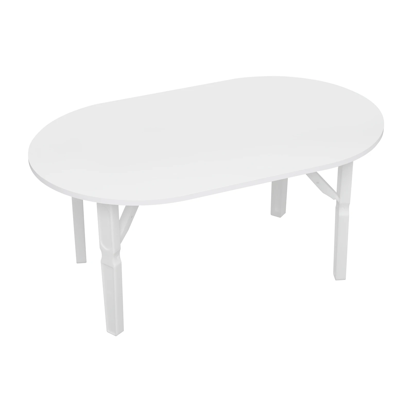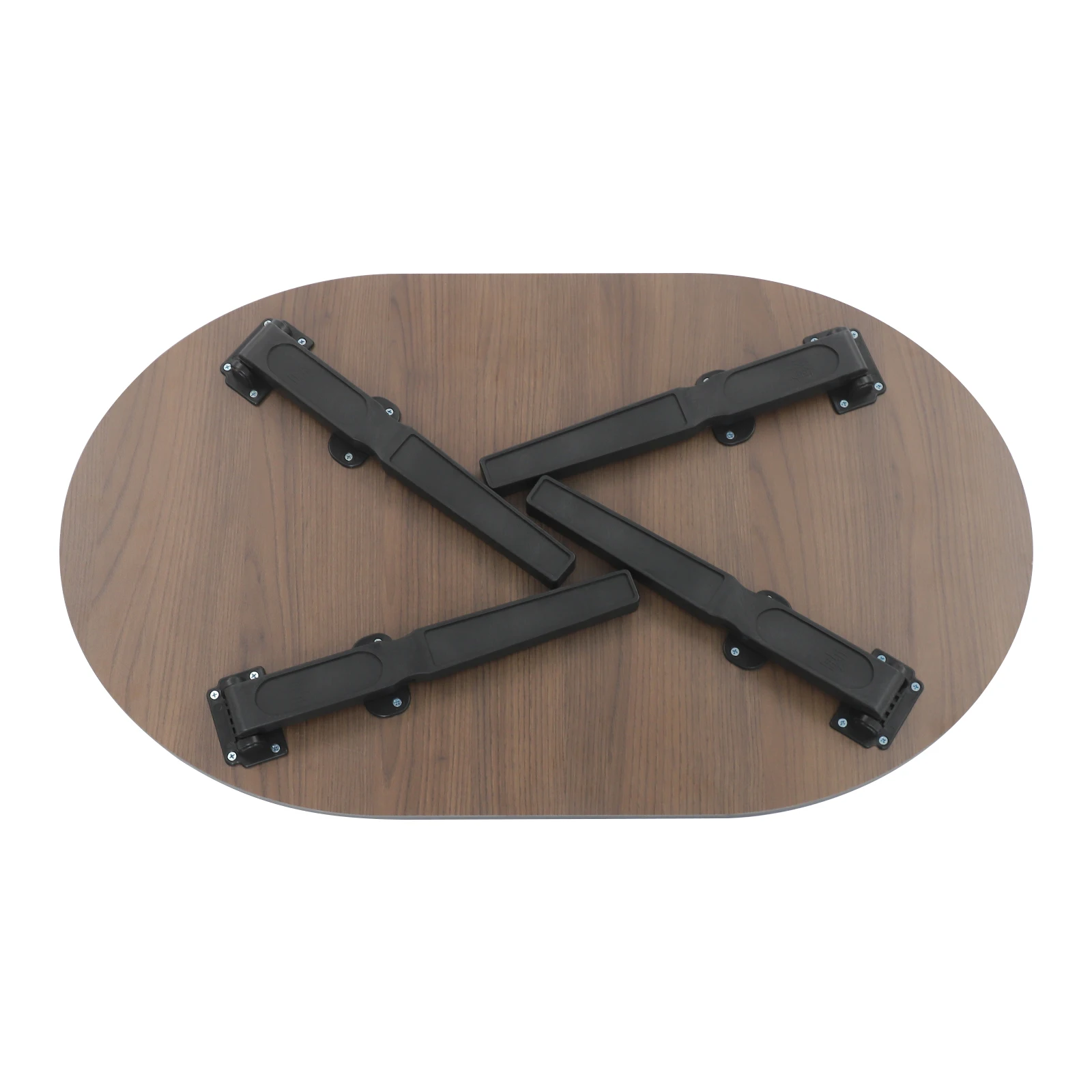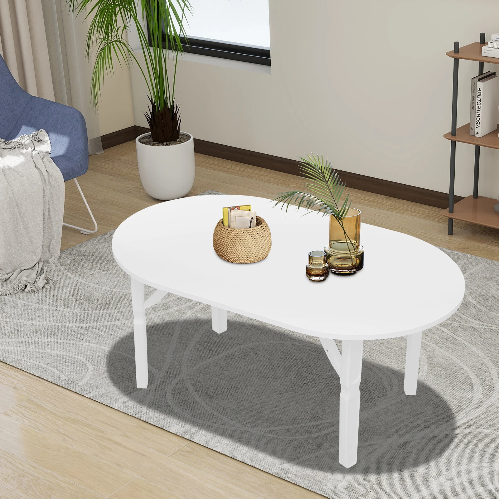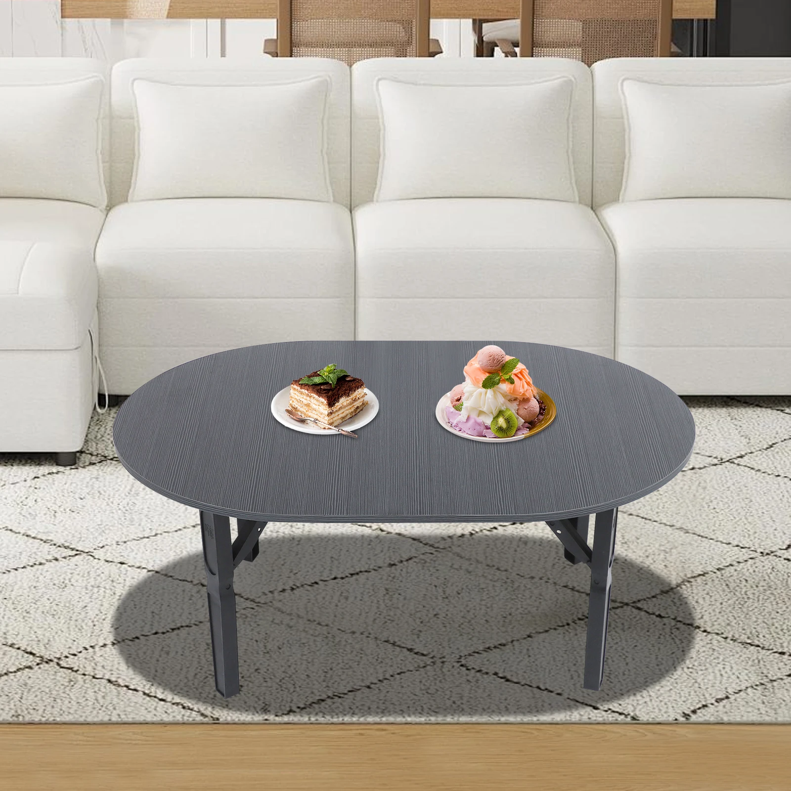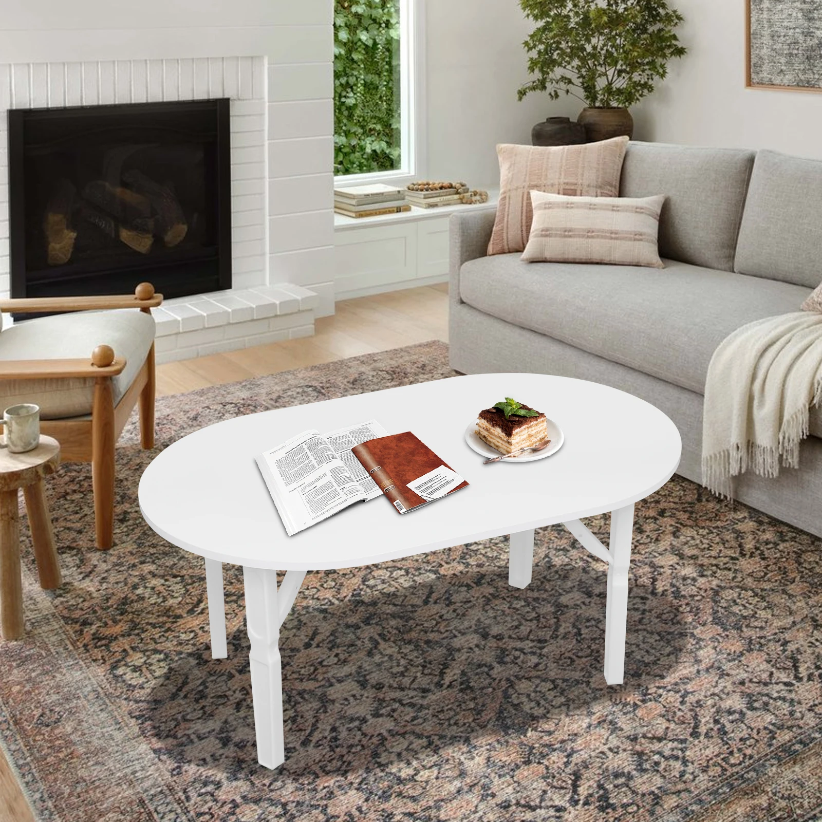 Upgrade your space with this sleek, foldable coffee table—perfect for small apartments, cozy corners, or as a convenient side table wherever you need it. With a spacious 31.5 x 18.9-inch oval top, it easily holds your coffee, books, tablet, or decor. The sturdy self-locking legsopen with a simple "click" for instant use, and fold flat when not needed—so you can stash it behind the couch, under the bed, or in a closet in seconds. Made from durable engineered wood with smooth edges for safety, it’s ready to use right out of the boxand wipes clean in a flash. Whether you're relaxing in the living room, working in your study, or enjoying a quiet cup on the balcony, this space-saving table is a smart, stylish addition to any home.