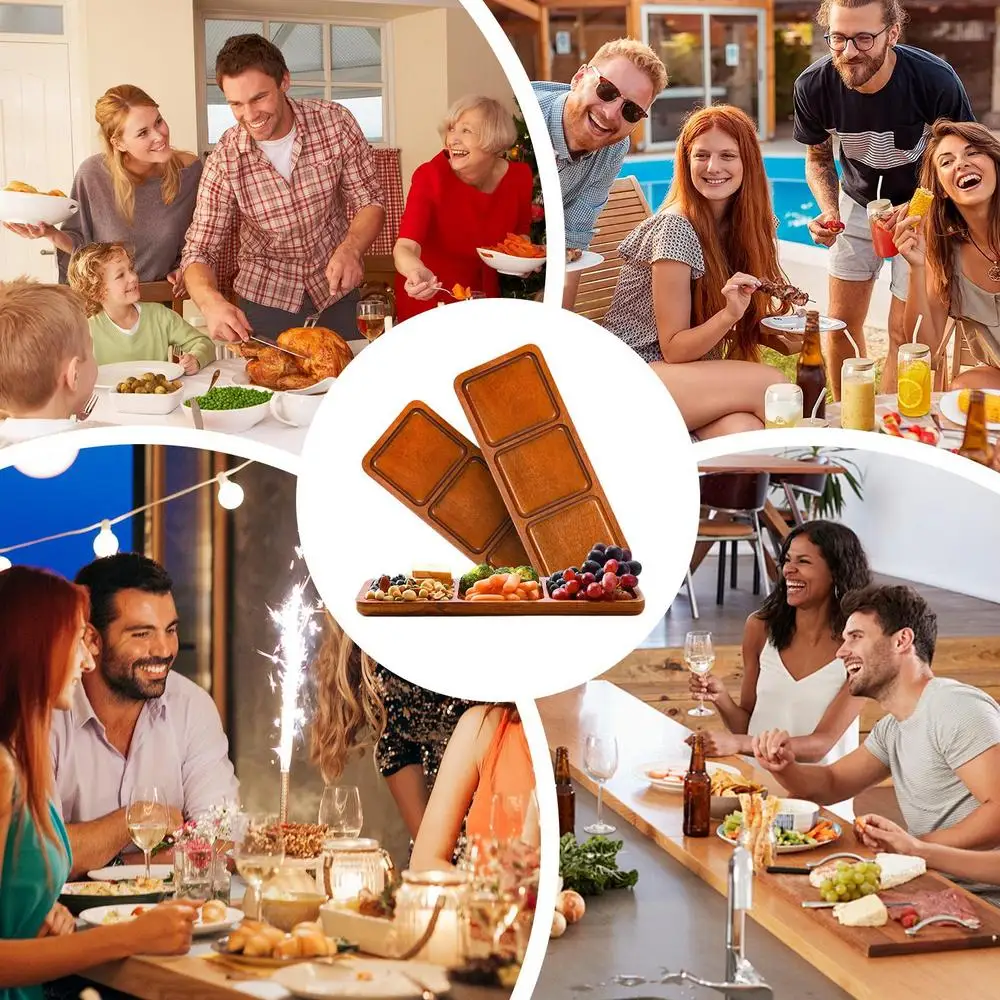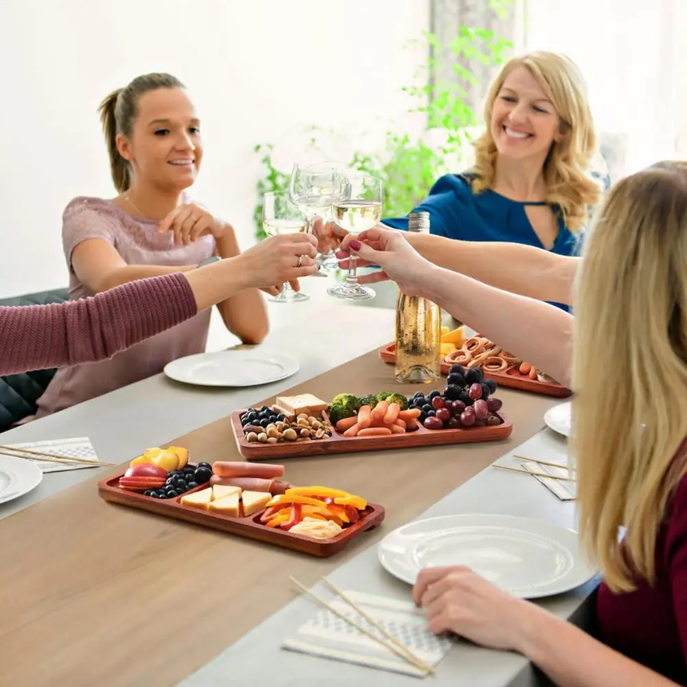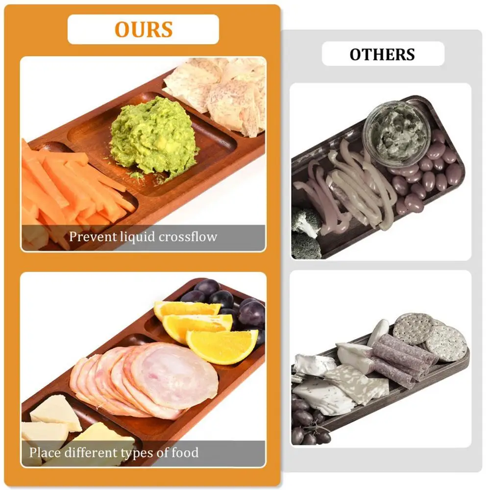 1.Compartments Design: Utilize the divided design of our charcuterie board for a unique serving experience that prevents the mixing of flavors. This board holds and divides different foods across 3 compartments, promoting flavor separation and enhancing your entertaining game