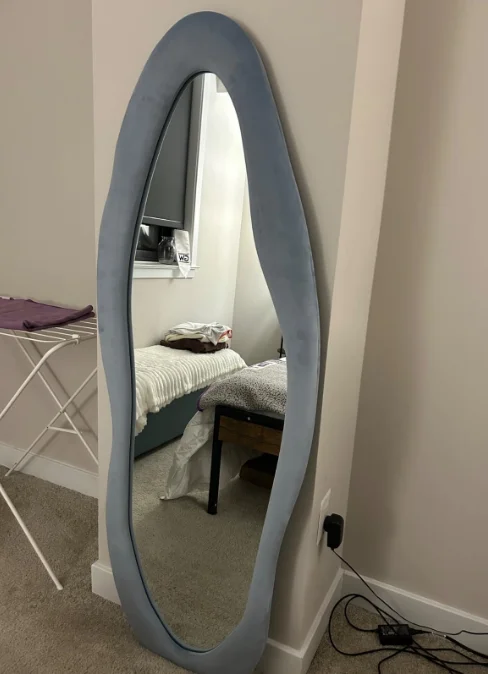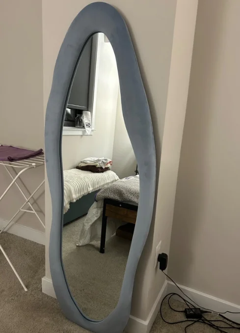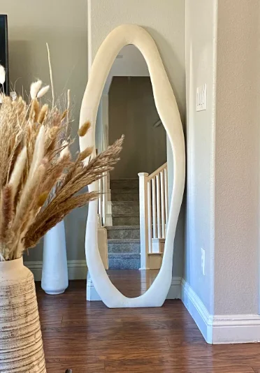 • UNIQUE DESIGN: The shape of the full length mirror uses an irregular design. The footprint shape makes the entire mirror looks unique. It is very conspicuous in any space and makes your room look tasteful