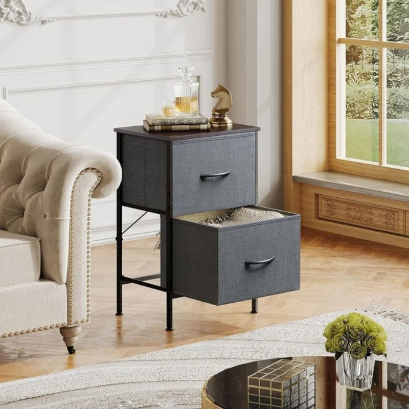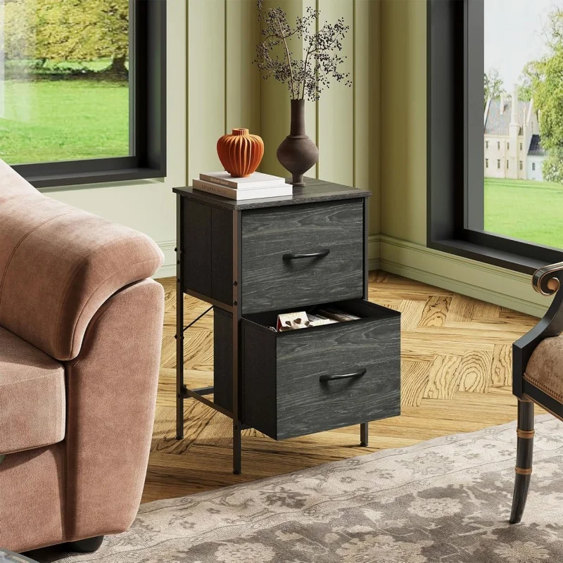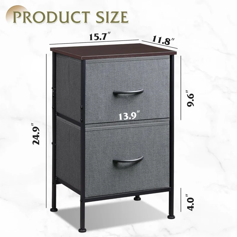 2. Generous Storage: Enjoy ample space with 2 fabric drawers and a wooden top for easy access to your everyday essentials.