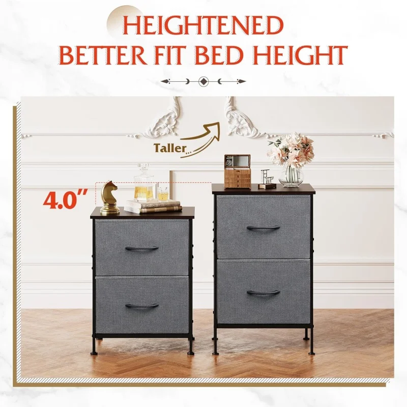 GALAXHERO Night Stand Set 2 Dresser Nightstand 2 Fabric Drawers Bedroom Furniture College Dorm Closet Storage
