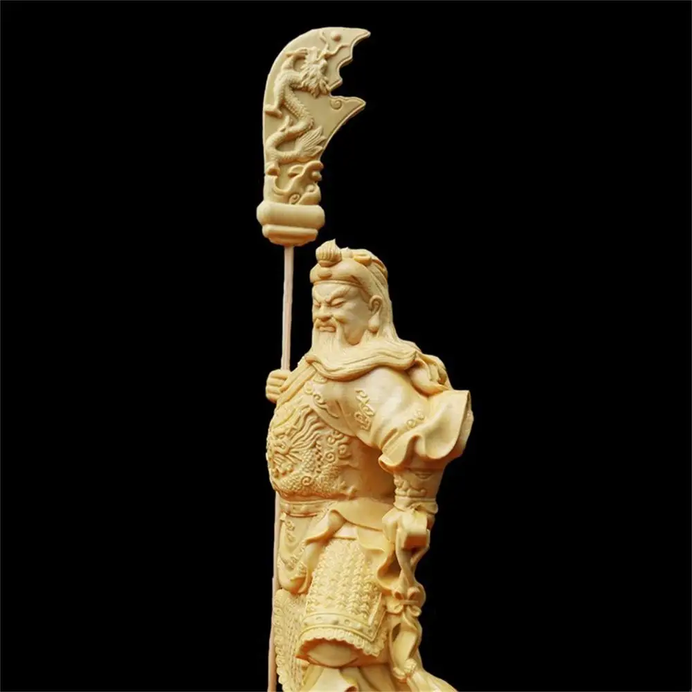 3.Robust Material: Crafted with excellent boxwood material, this Guan Yu Statue boasts good wear resistance and stability, ensuring a tough and sturdy adornment for your space