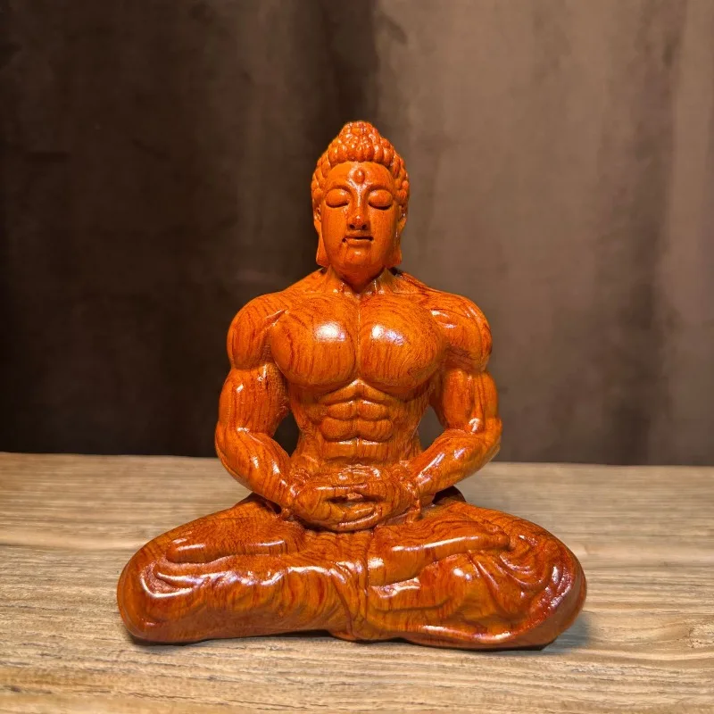Hand-Carved Solid Wood Muscle Buddha Statue