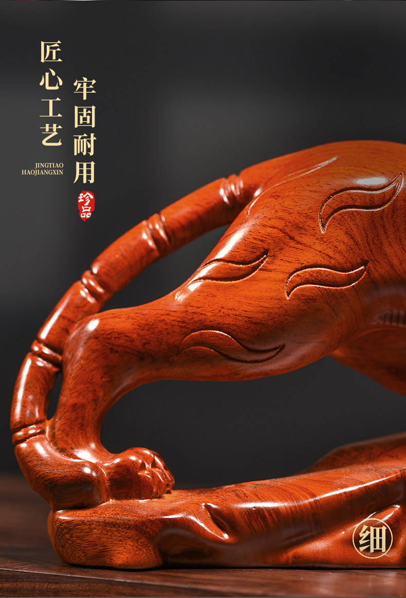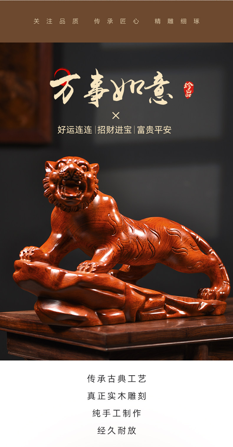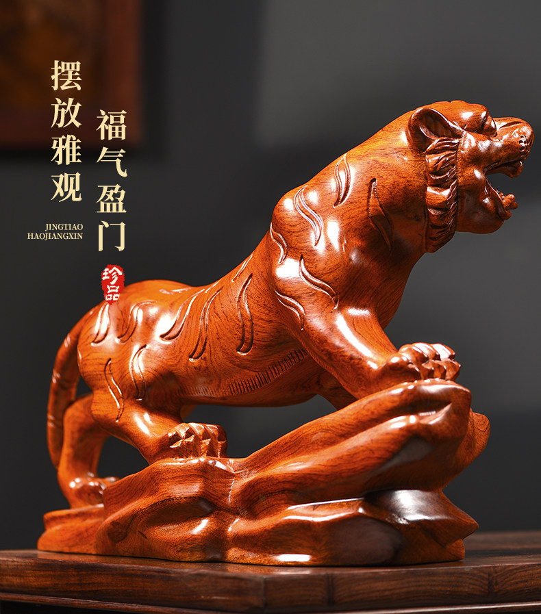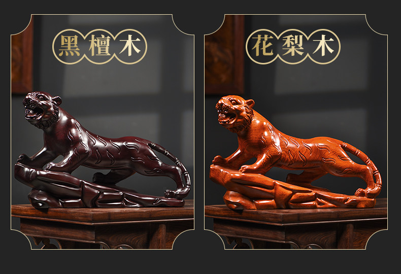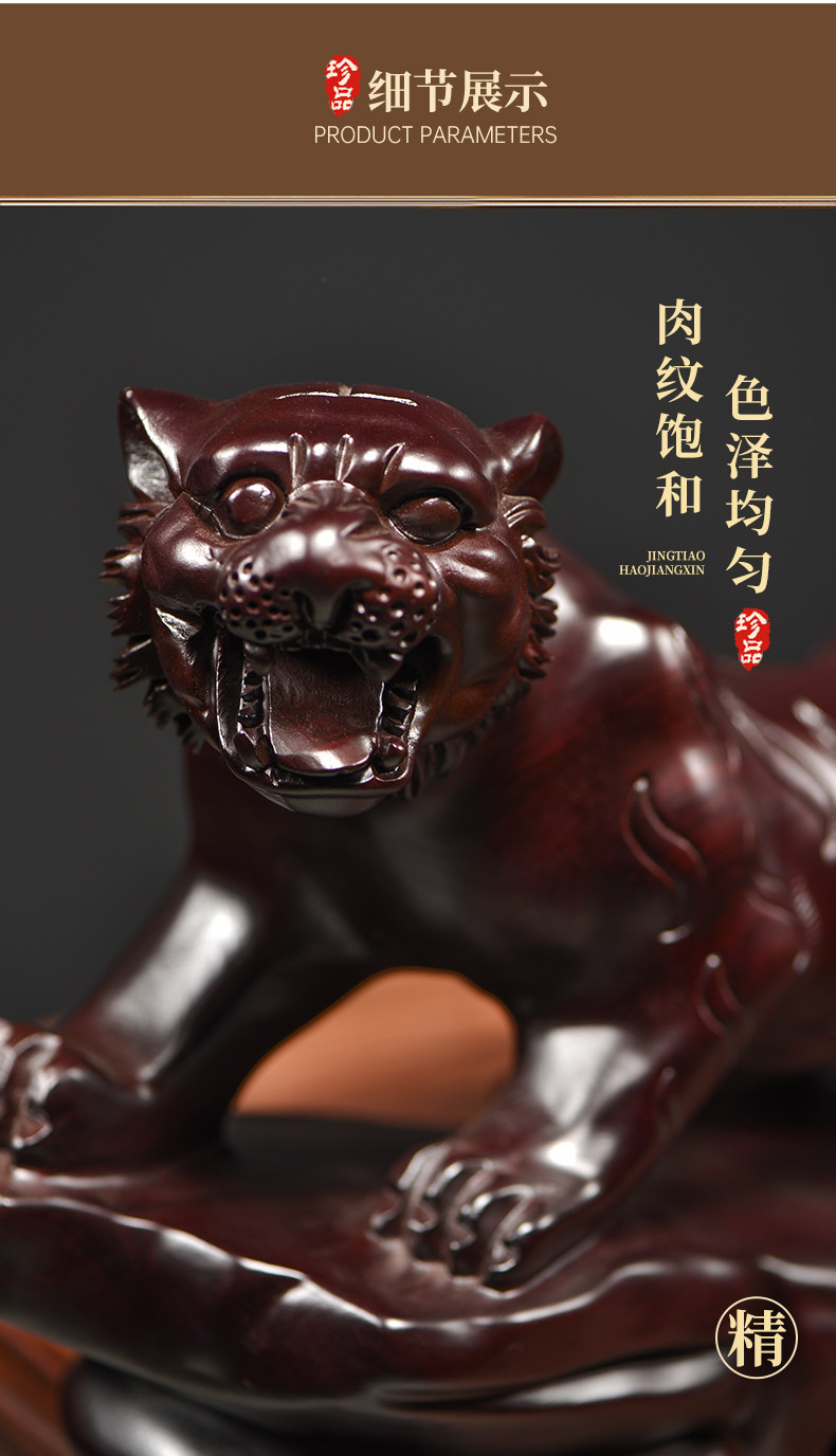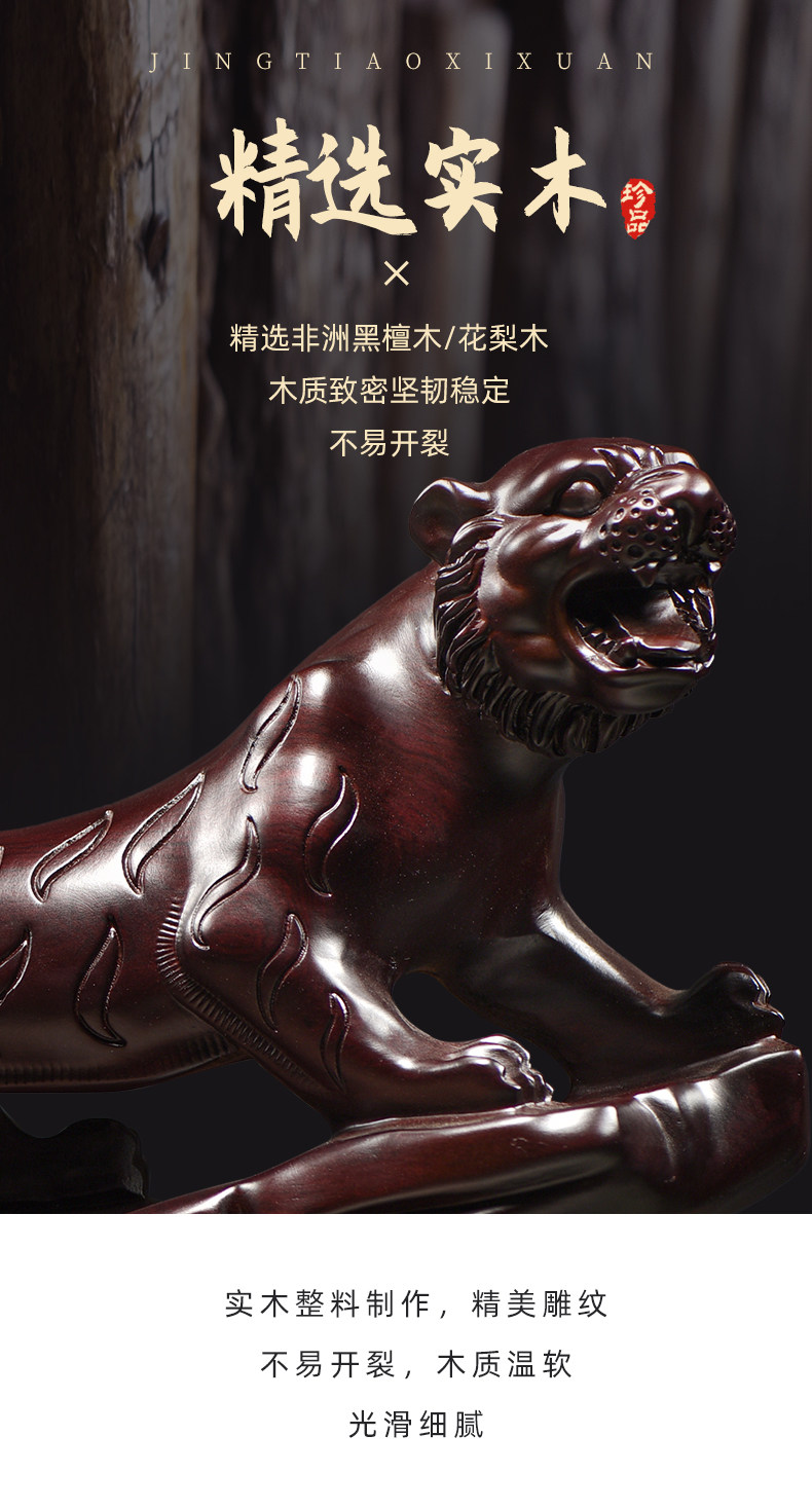 Hand-Carved Ebony Wood Tiger Statue - Majestic Mountain Tiger Home Decor, Chinese Zodiac Office Sculpture, Luxury Gift