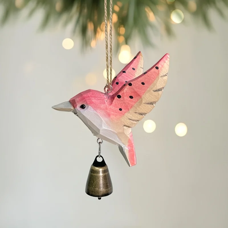 Soothing Bell: A small bronze metal bell elegantly hangs beneath each hummingbird, creating a gentle tinkling sound when the bird sways or swings in the wind. Perfect for hanging on a door or Christmas tree.