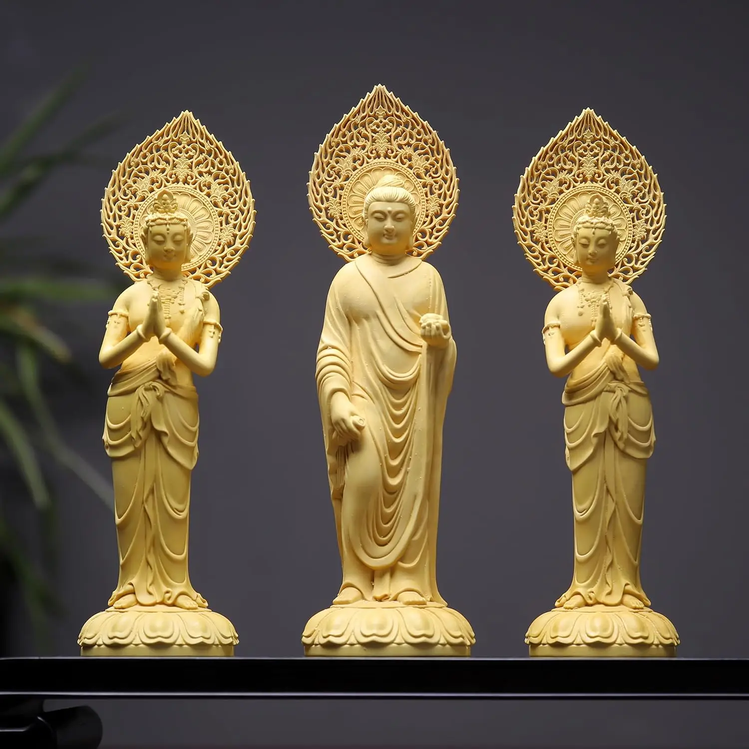 Enhance your space with this Handcrafted Boxwood Western Three Saints Buddha Statue Set, featuring Amitabha, Manjushri, and Samantabhadra . Crafted from premium boxwood , these statues embody enlightenment, wisdom, and virtue. Ideal for home altars, meditation areas, or office decor . A meaningful gift for those seeking peace and spiritual blessings, these statues bring harmony and beauty to any environment .