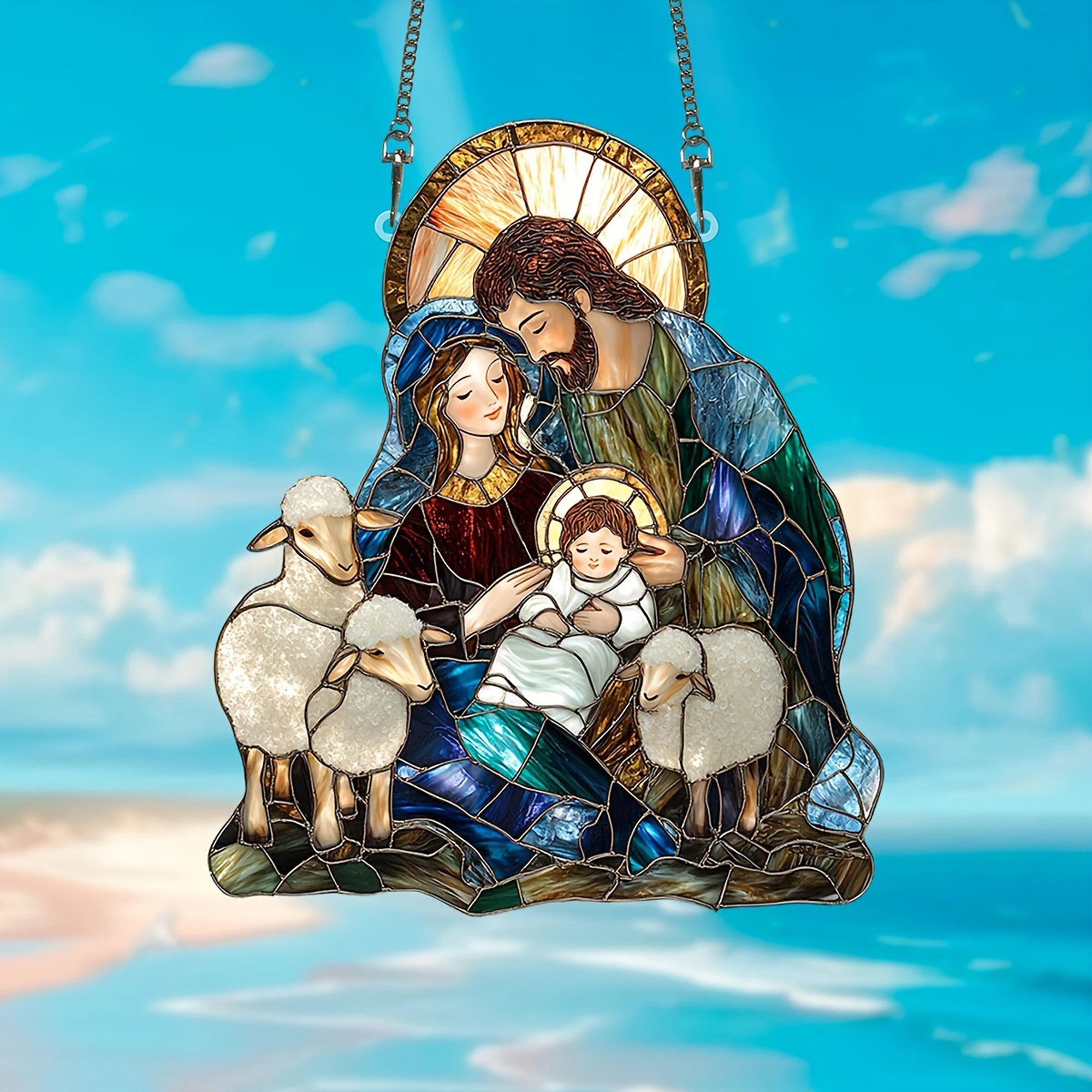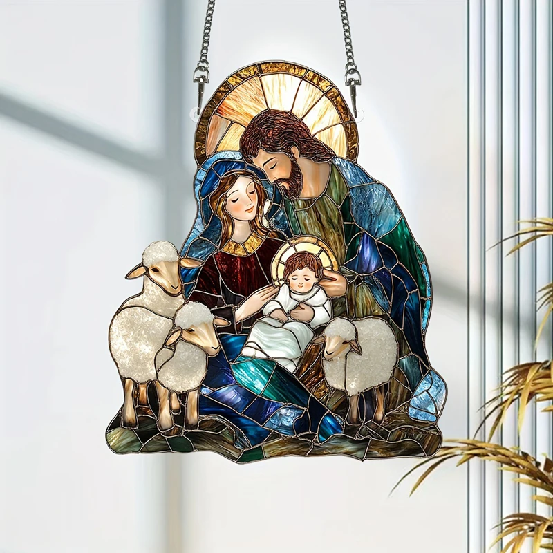 Nativity Scene Ornament Acrylic Baby Jesus Holy Family Hanging Decoration for Home and Holiday