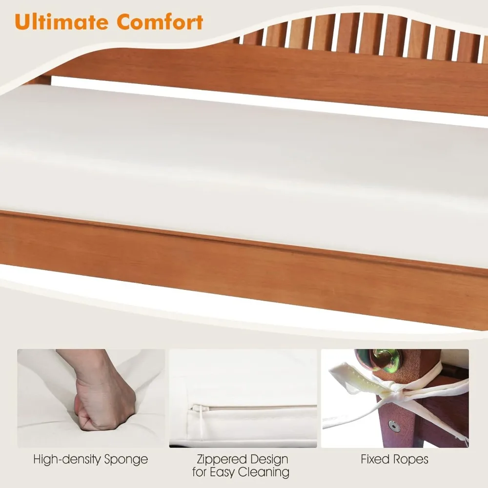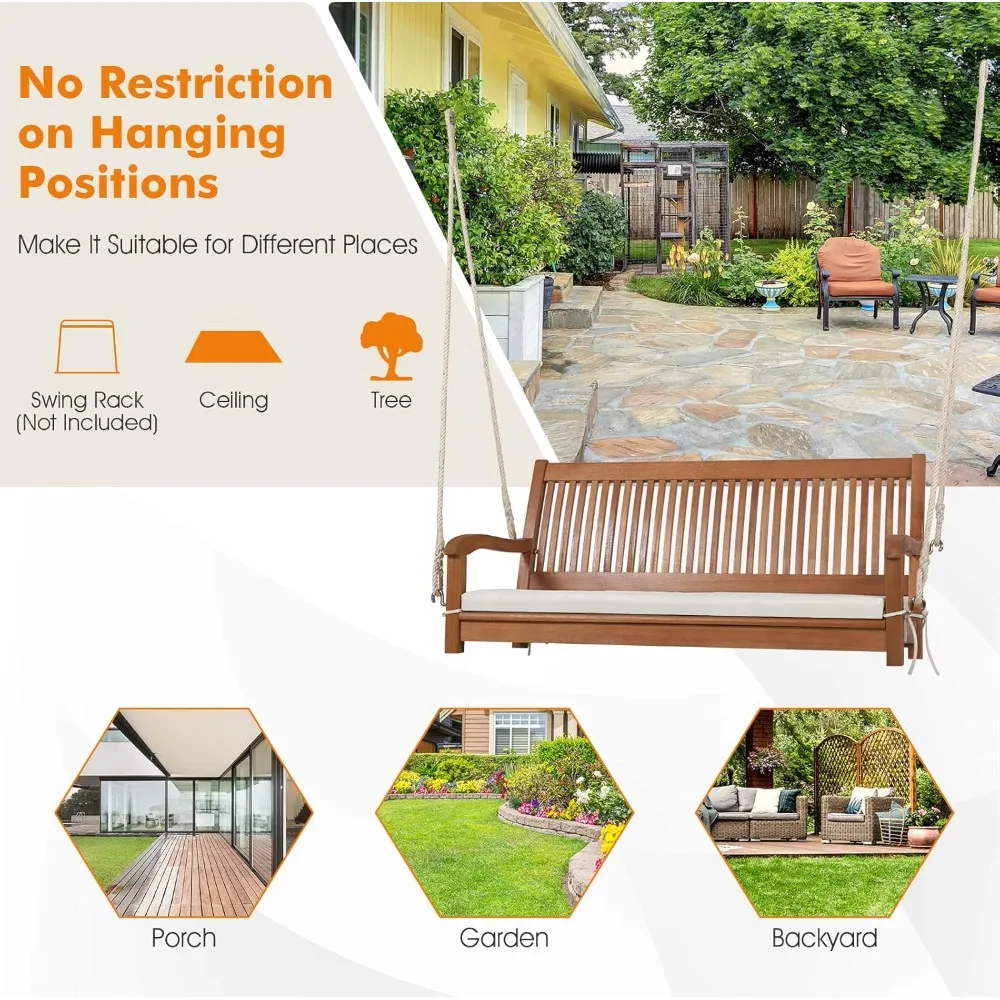 • 【Soft Padded Cushion】 This wooden swing bench is more comfortable than others thanks to the included soft padded cushion. Covered with a breathable cover and padded with high-density foam, the cushion provides you with ultimate comfort. And the fixed ropes will keep the cushion in place. If you want to wash the cushion cover, just unzip it for easy cleaning.