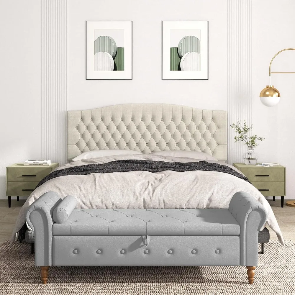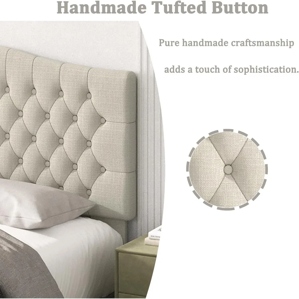 - MODERN DESIGN: This linen King headboard with hand-pulled tufted button and united style legs, and fine details such as generous texture and curved-flowing elegant top adds a unique and plush aesthetic to any bedroom decor