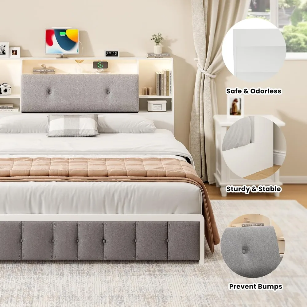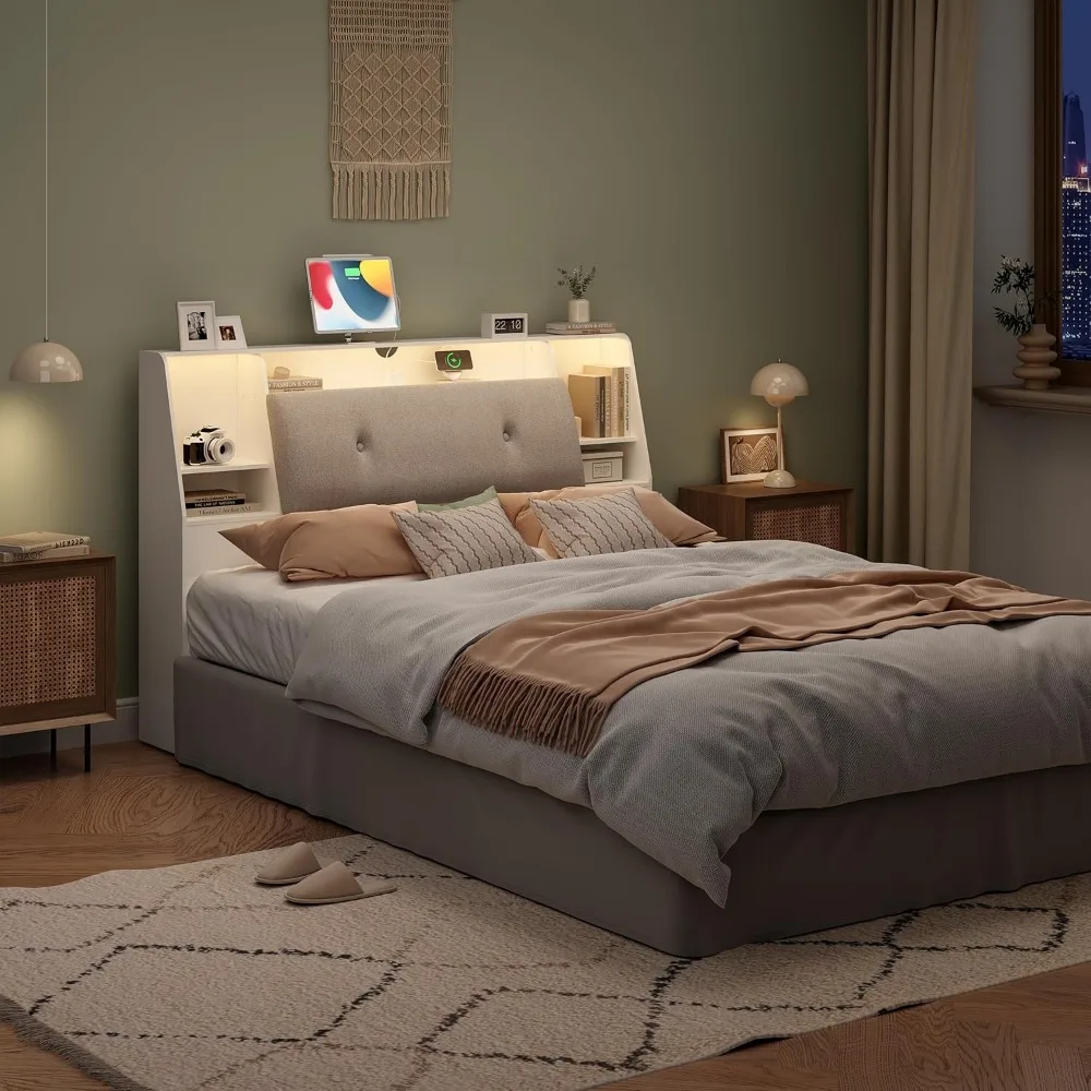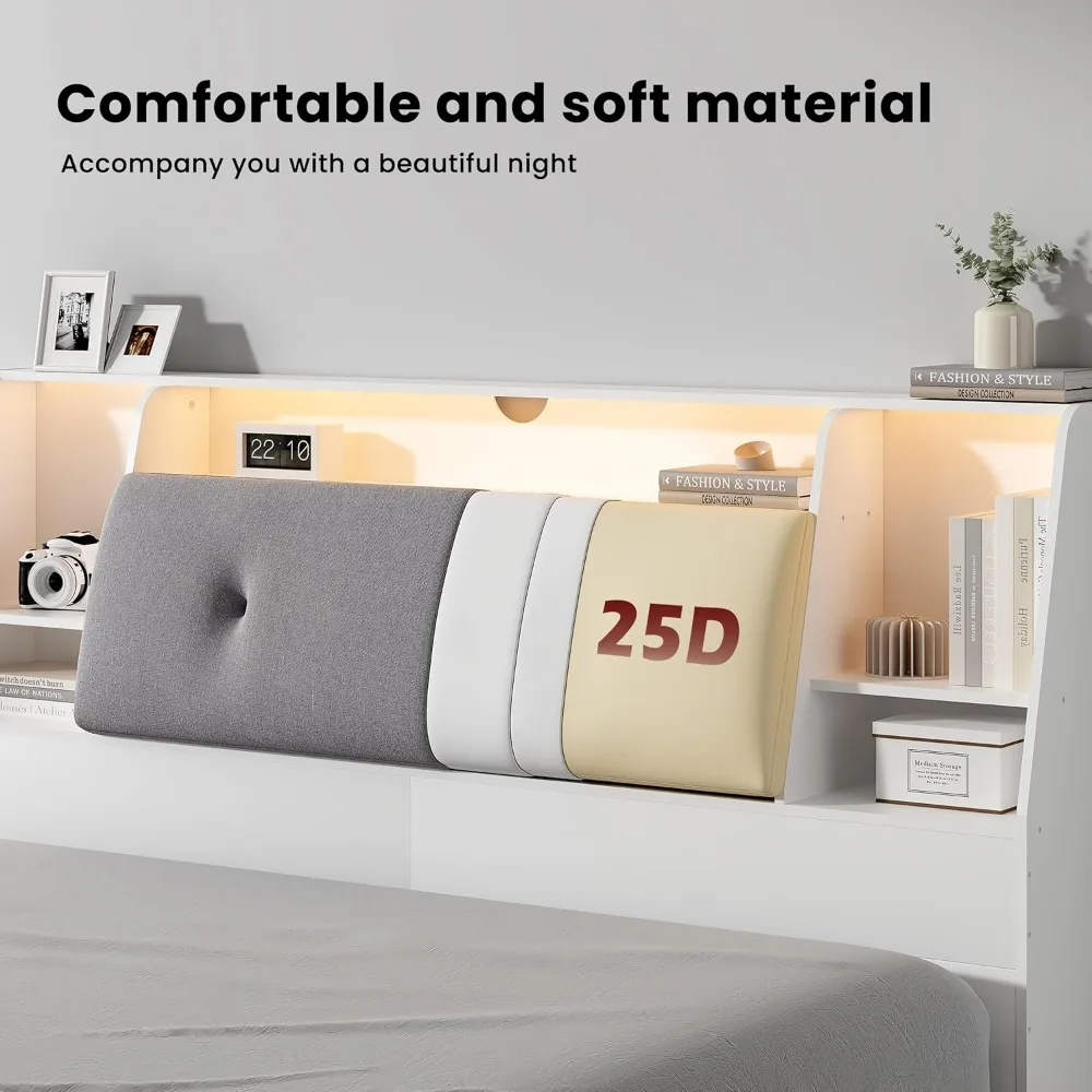 • 【Built-in Charging Station & Soft Light】Our Queen headboard comes with 2 built-in standard AC power outlets and 2 USB ports, giving you the flexibility to charge your phone, tablet, headphones, book lights and other electronic devices while relaxing or working. Extra long light belt with eye protection light to protect your eyes
