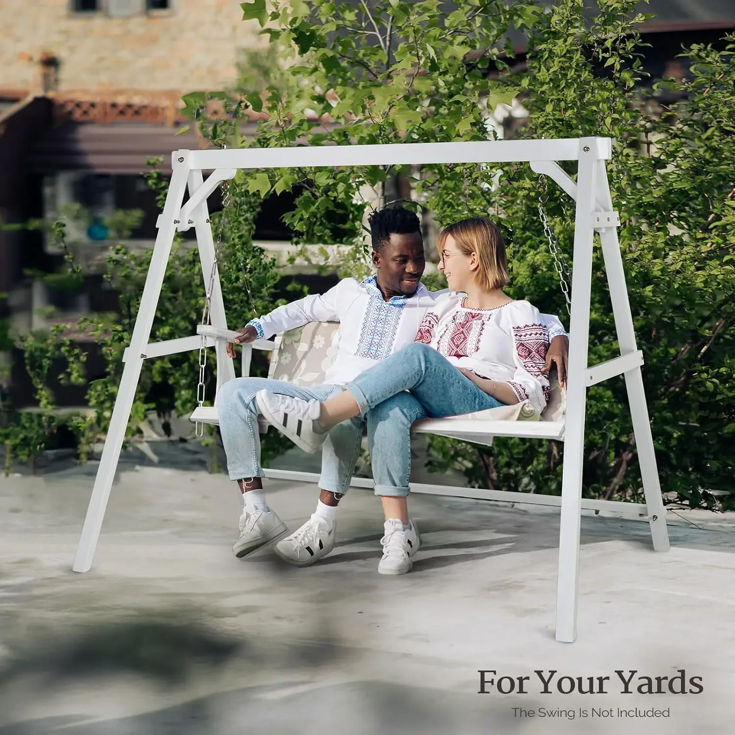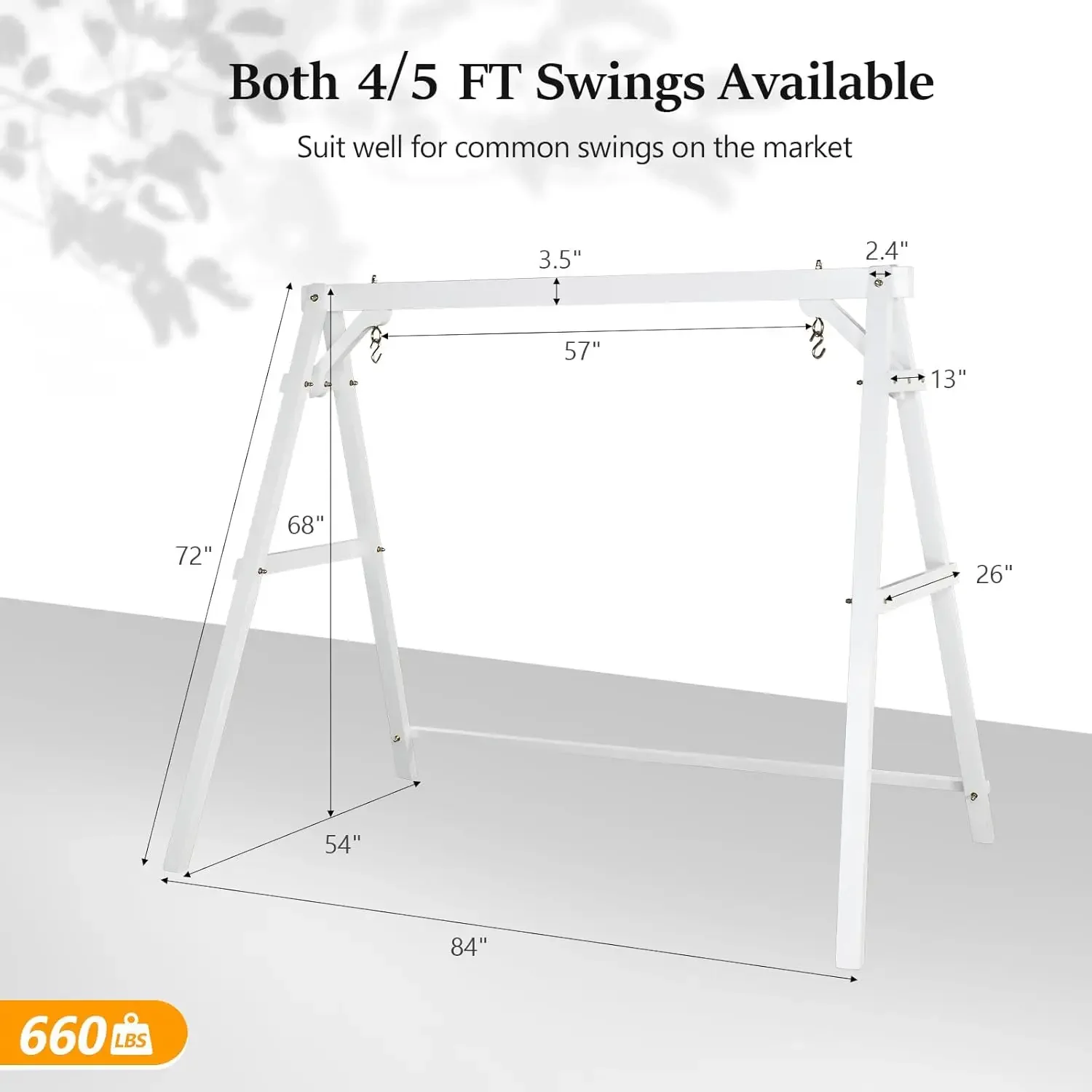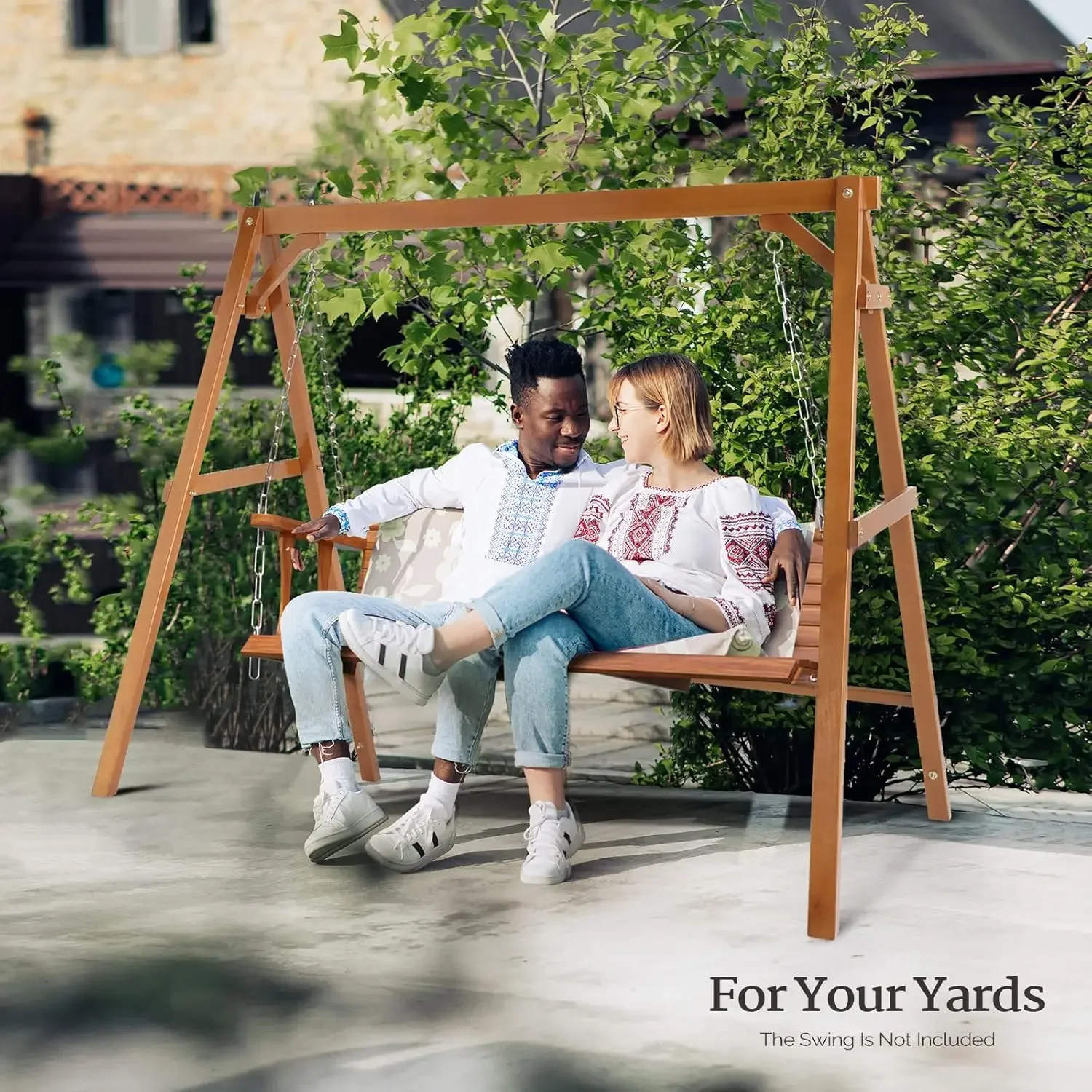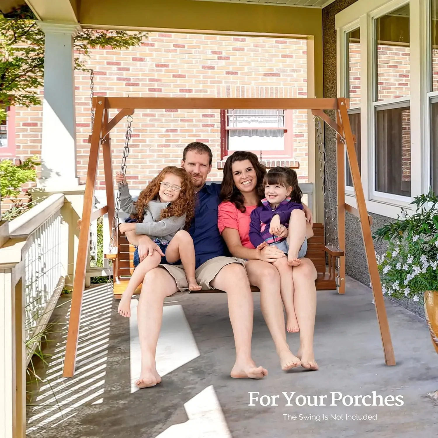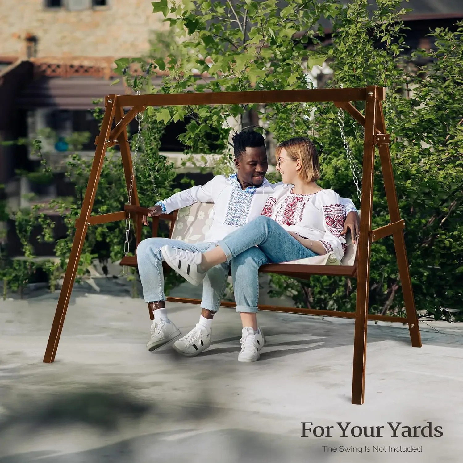 Heavy Duty 660 LBS Wooden Swing Frame with Extra Bottom Connection Board, Upgraded A-Frame Porch Swing Bench Stand for Indoor & Outdoor (Brown)