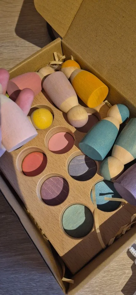 Pastel Basswood Rainbow Stacking Blocks Pine Building Semi Sorting Peg Dolls Balls for Kids Play