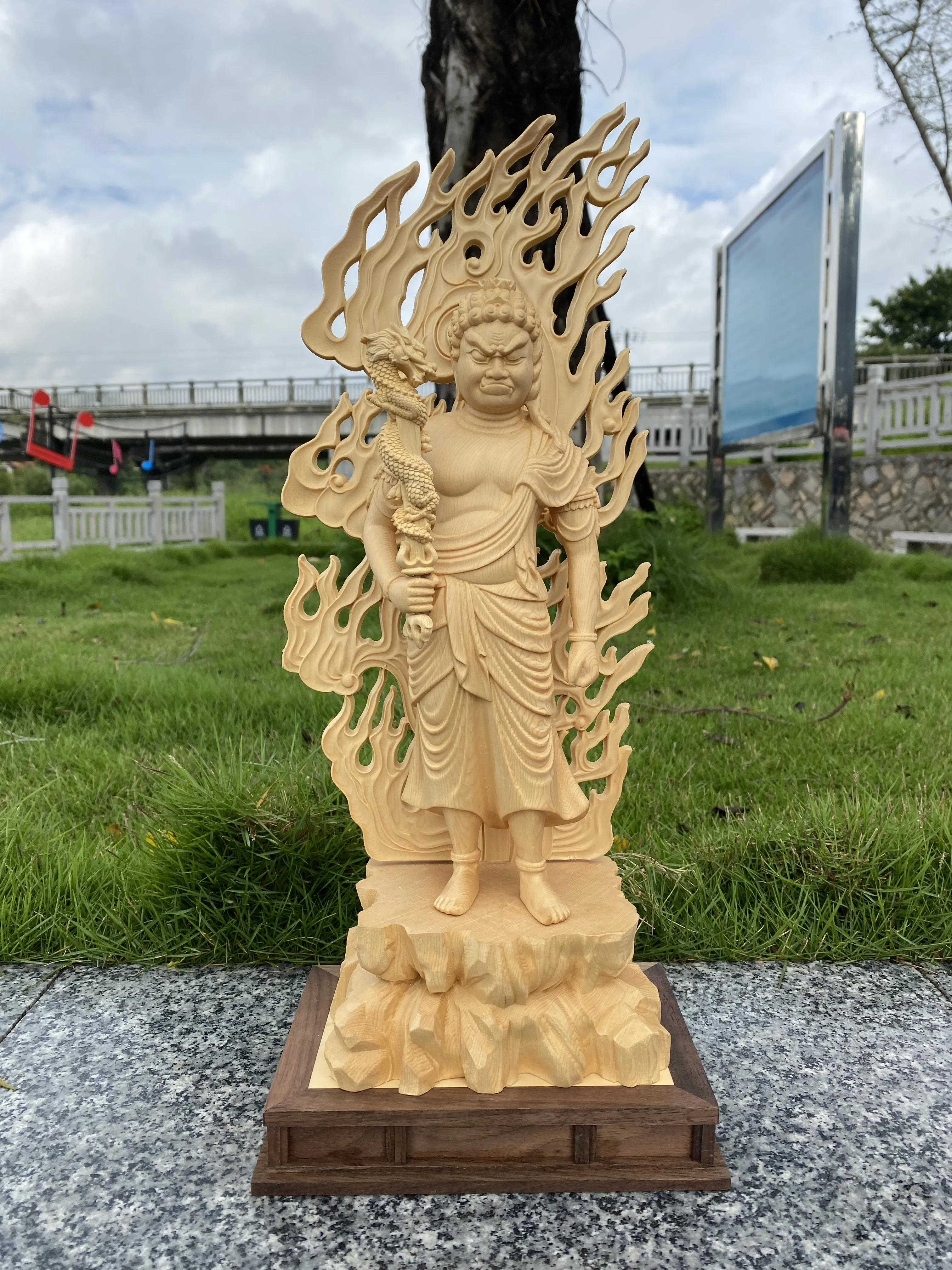 - **Masterful Craftsmanship** πŸ› οΈ: Hand-carved from high-quality Hinoki wood, this statue features intricate detailing that captures the powerful expression and presence of Fudo Myoo.