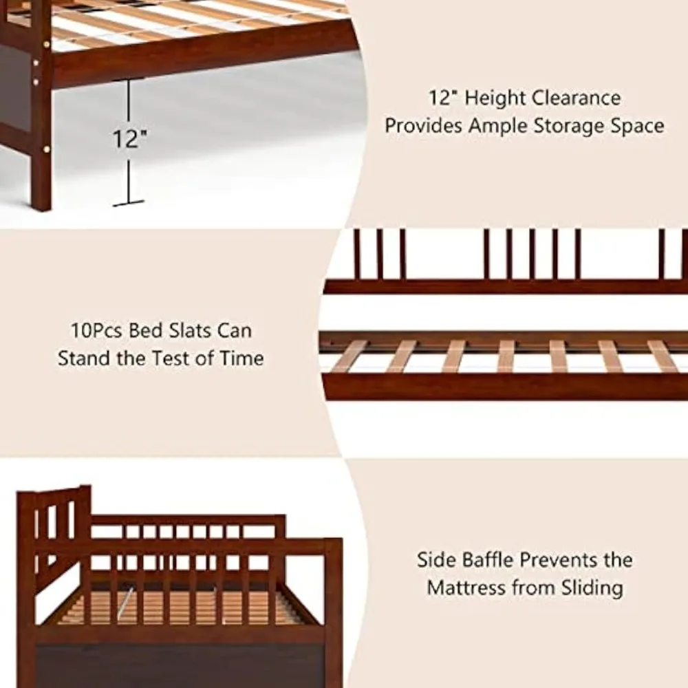 • High-quality Materials & Durable Frame: This wooden bed frame is made of high-quality pine wood and adopts a scientific structure to ensure its stability; in addition, pine wood is not susceptible to cracking due to changes in humidity; the strong legs and wide wooden planks not only greatly increase the weight of the bed, but also ensure stability