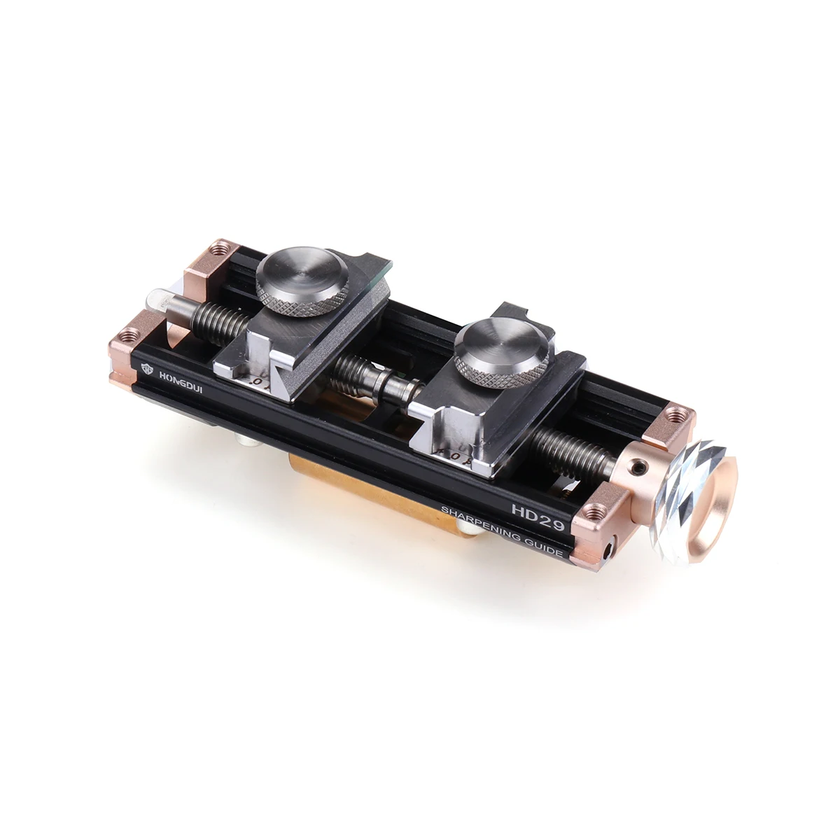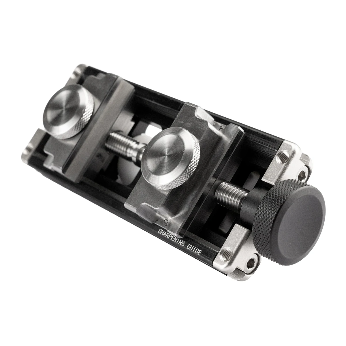 The angle sharpened on your tool is determined by how much of the tool extends beyond the front edge of the Sharpening Guide. The more the tool extends beyond the Sharpening Guide, the longer the bevel (smaller angle).