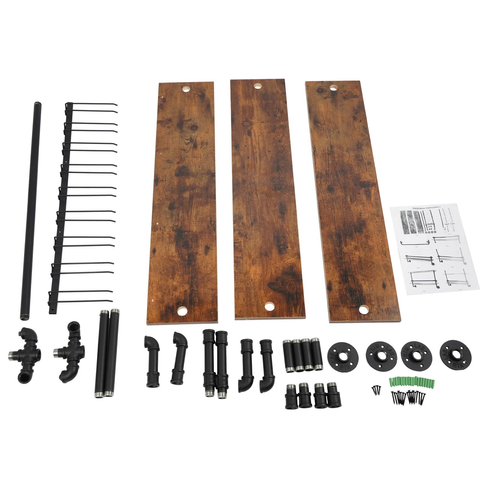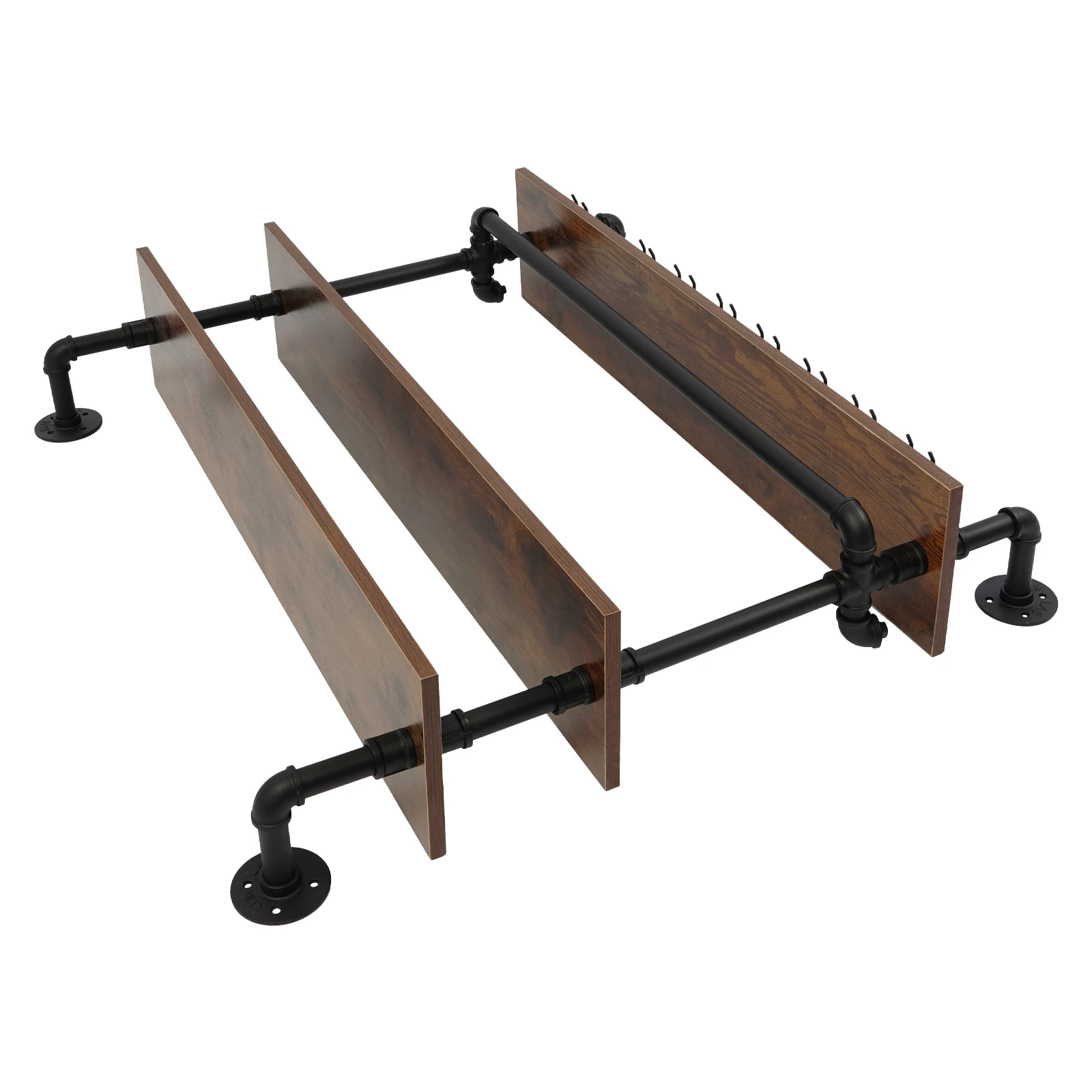 This beautifully designed wine rack is not only a great addition to your wine collection, but also a delightful decoration to enhance the ambiance of your living space. It is mainly made of high-class wood and iron, which is used in welding and high-temperature baking paint processes, which is long-lasting and practical. Its hanging bracket and rectangular shelf provide ample storage space. Come experience the beauty and charm of a truly exceptional wine rack.