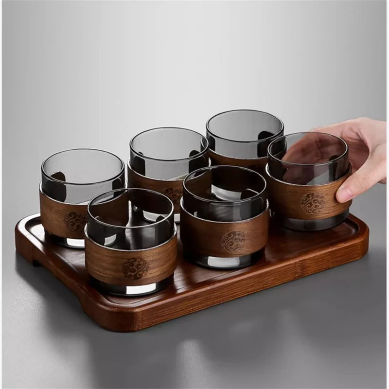 Japanese Style 150ML Heat-resistant Glass Tea Cup with Scald Proof Wooden Holder Kungfu Tea Set Master Cup Household Coffee Mug