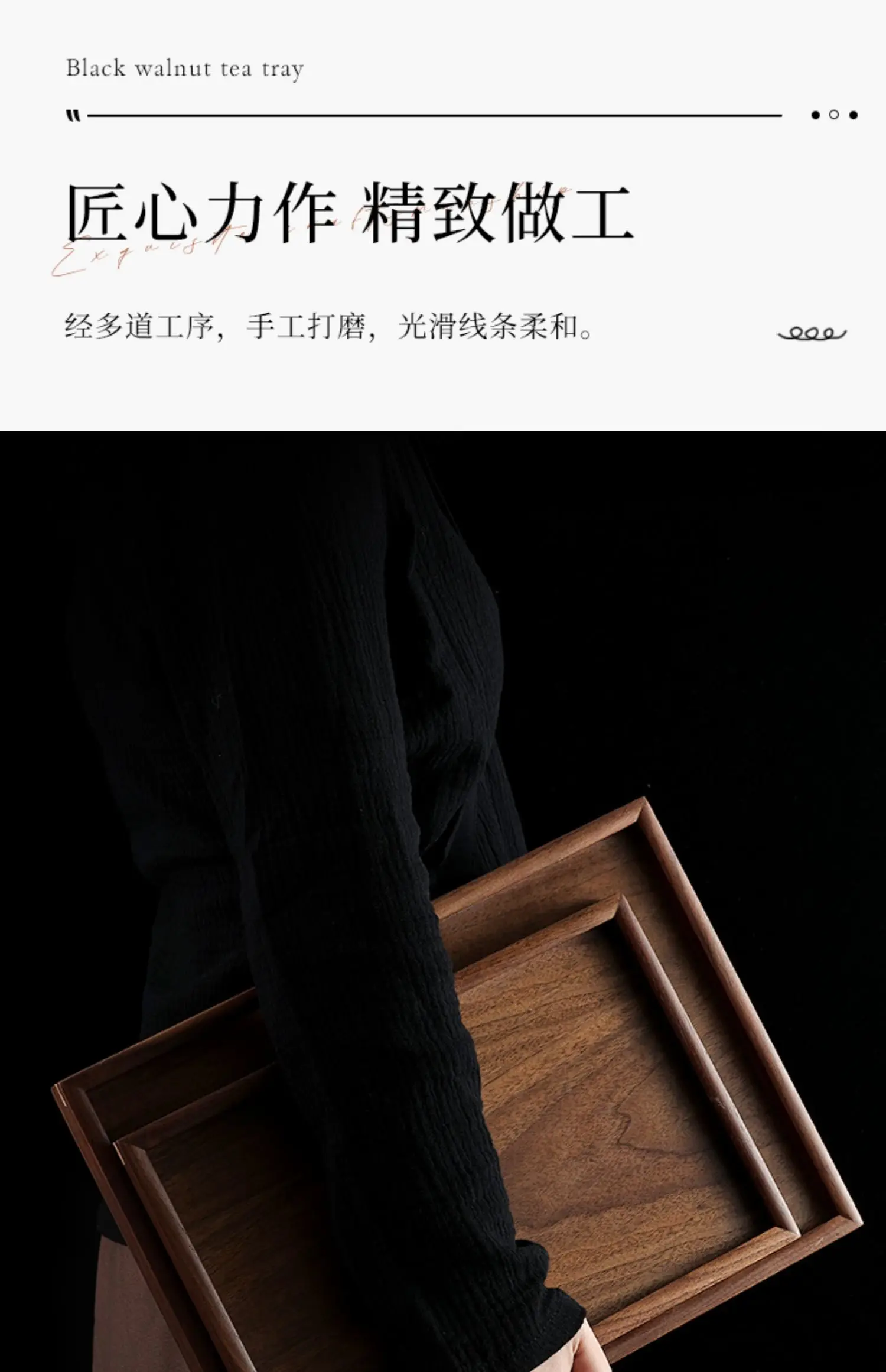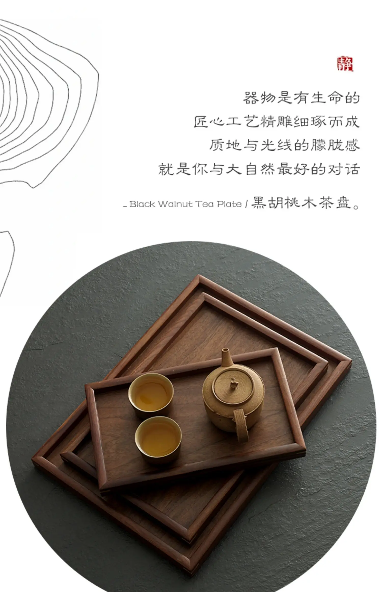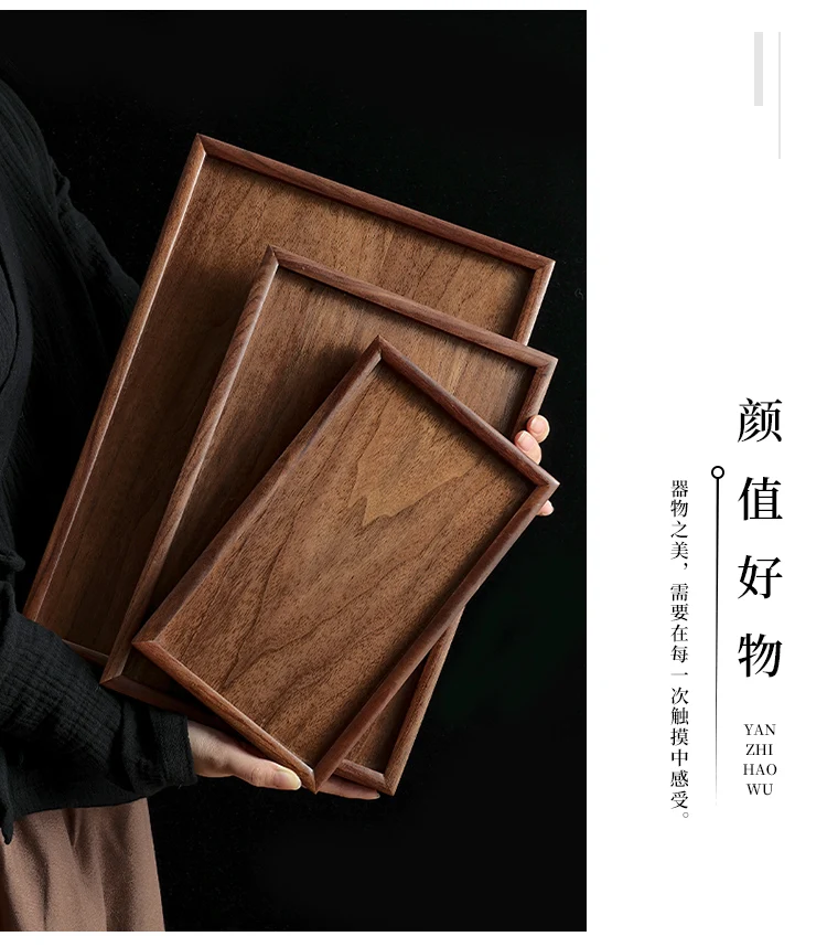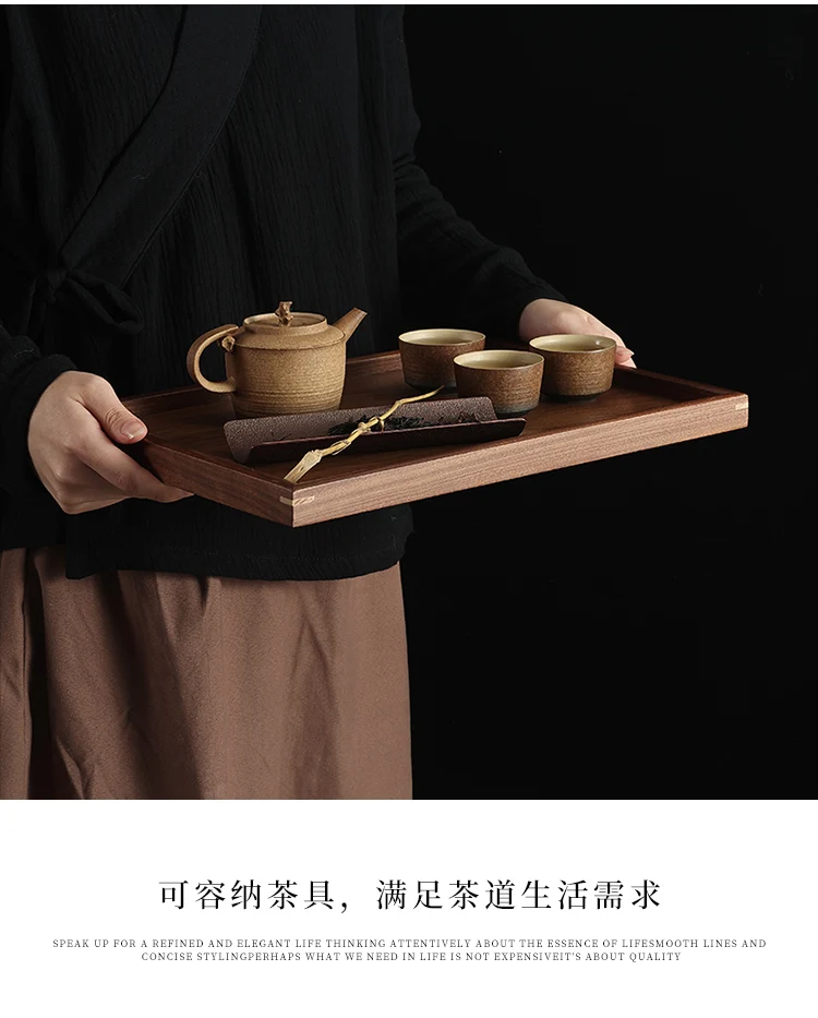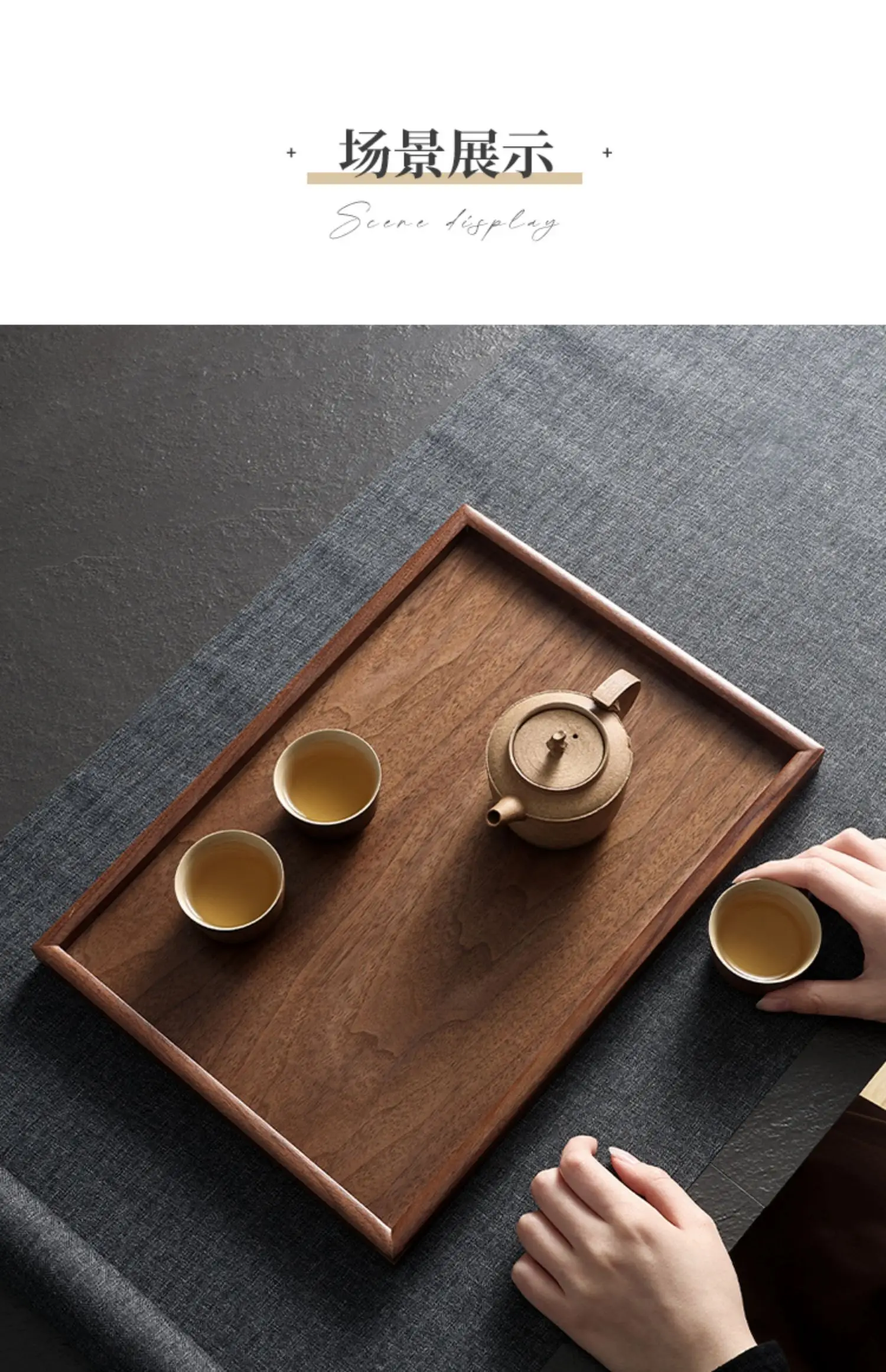 Japanese walnut tea ceremony wooden tray solid wood dry brewing tray home decoration high-end tea dessert dessert dinner plate