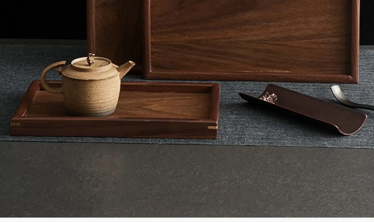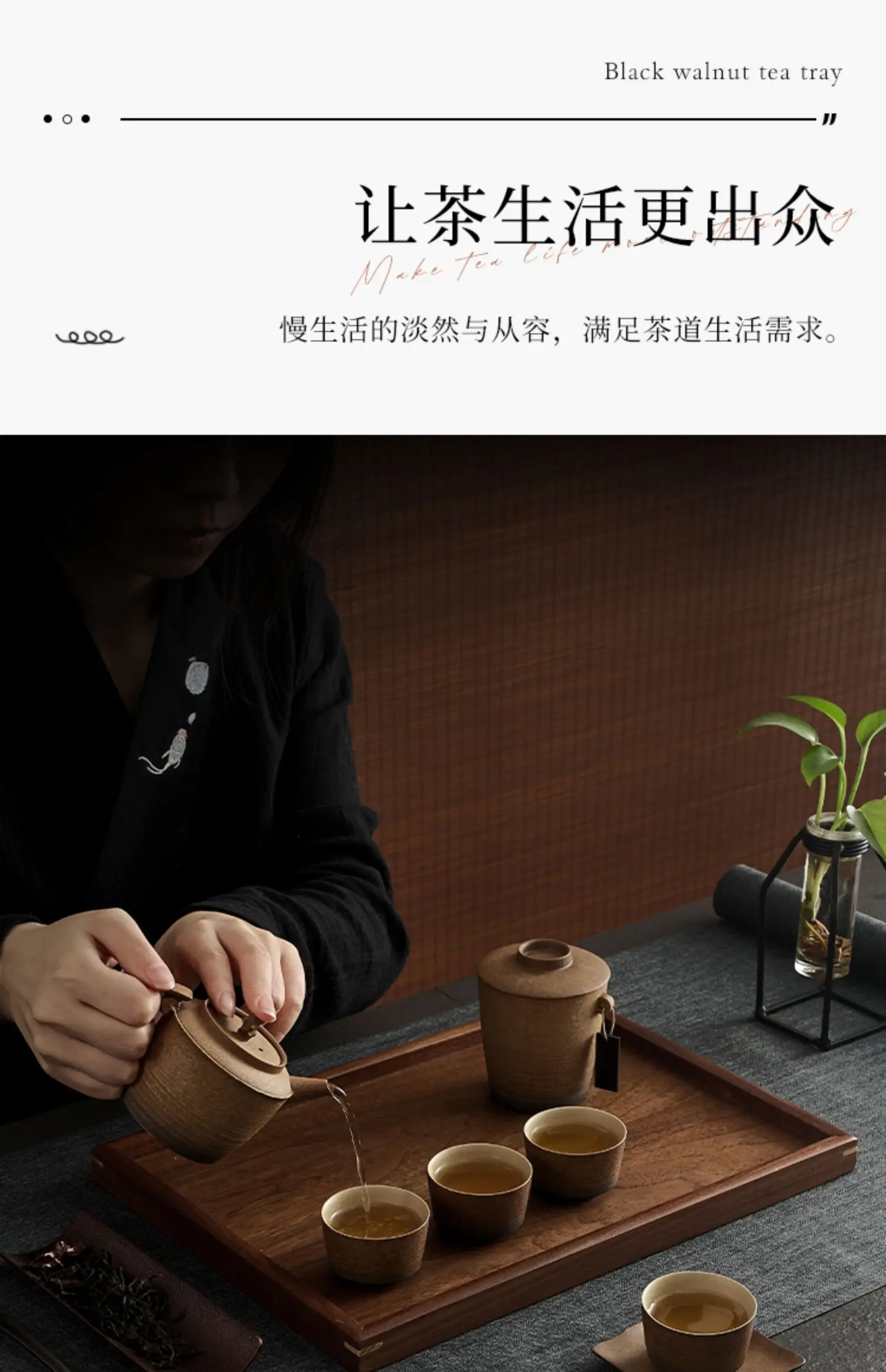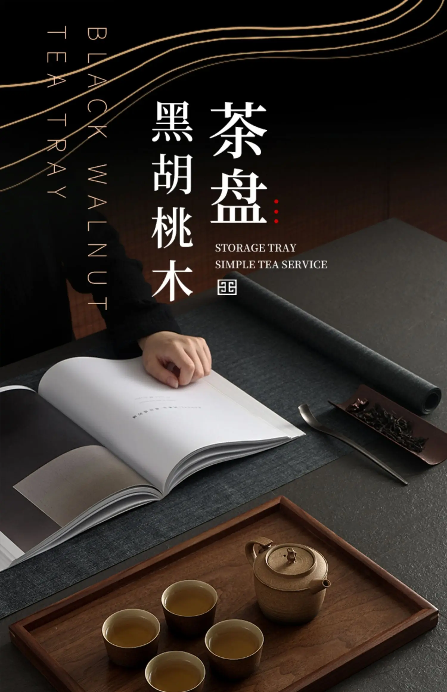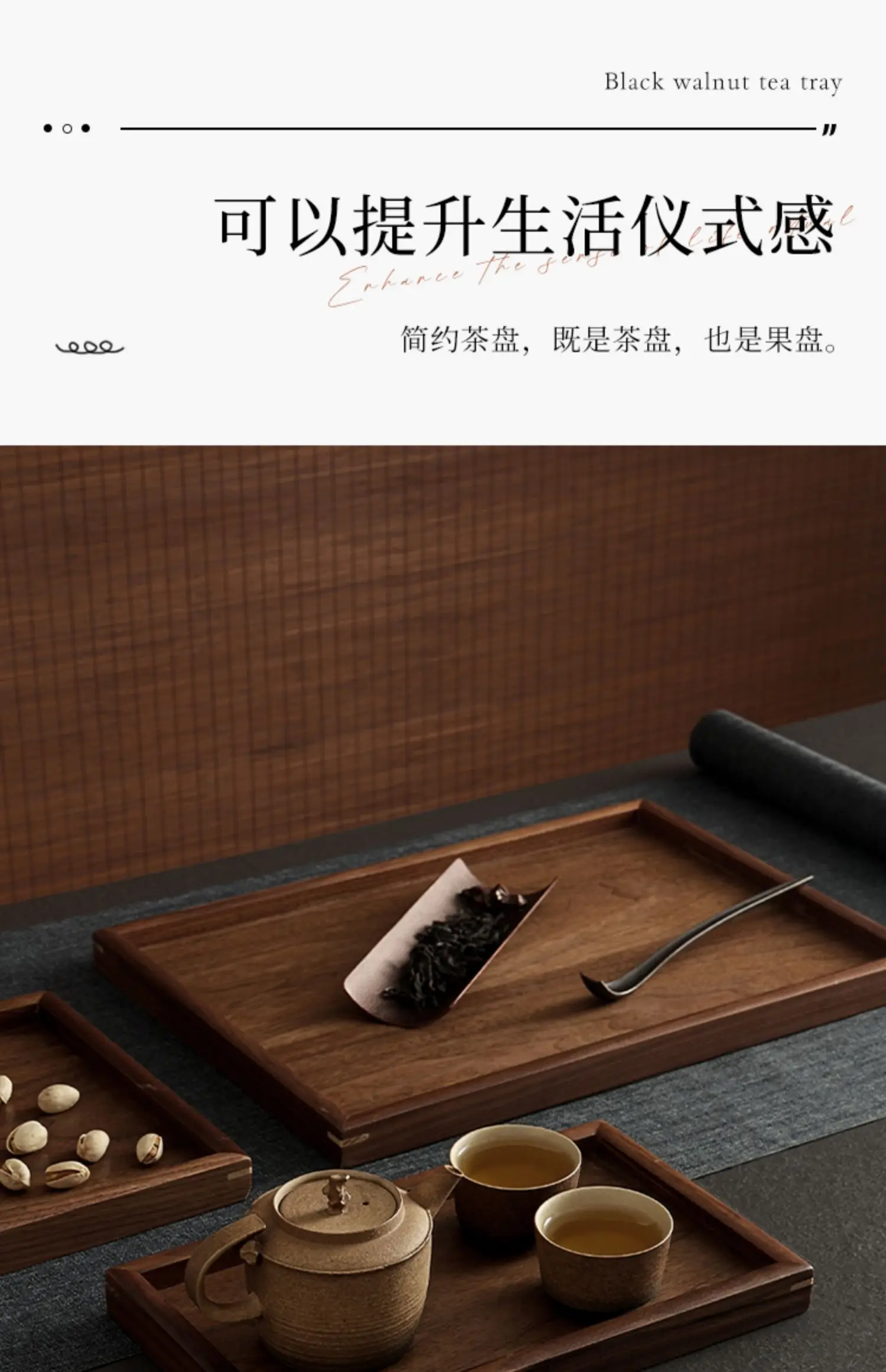 Japanese walnut tea ceremony wooden tray solid wood dry brewing tray home decoration high-end tea dessert dessert dinner plate