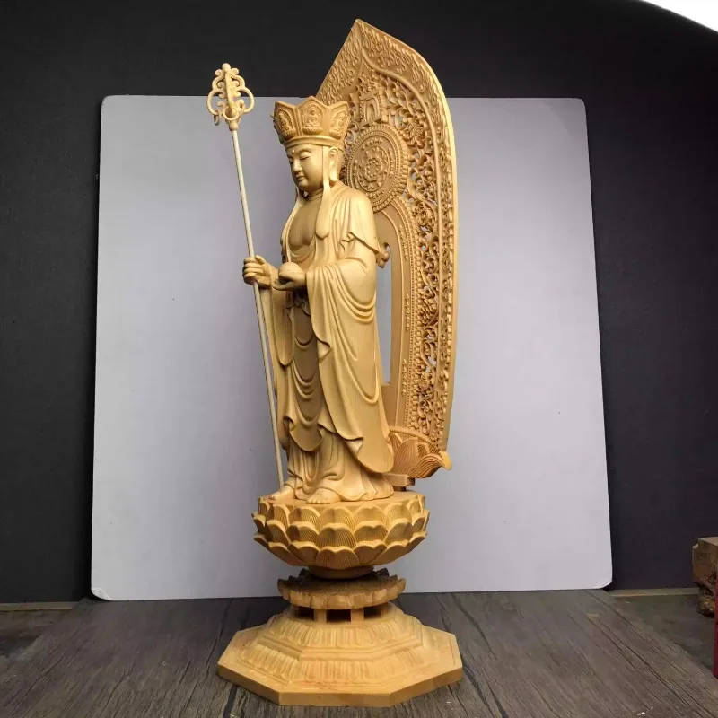 Own a piece of art that inspires. Order your Kiso Hinoki Wood Ksitigarbha Bodhisattva statue today and transform your space into a haven of peace and power.