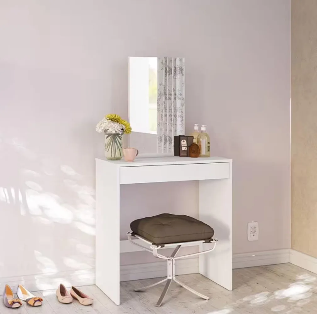 Update the look of your bedroom with the Kansas Modern Makeup Vanity Table from Polifurniture. The Kansas Vanity Table is perfect for any modern bedroom with its white finish and clean lines. The compact design allows it to fit into tight spaces while also providing extra storage. The large drawer provides concealed storage to help keep your room looking neat and tidy. The tall mirror and spacious table top offer the perfect place to get ready for your day or a fun night out. Constructed from engineered wood with a durable and resistant melamine finish this vanity was made to last. When the Kansas Vanity was designed, it was designed with one thing in mind, to make sure you look your best when you head out into the world. With its modern design, large drawer and tall mirror, the Kansas vanity table is a great addition to your bedroom.