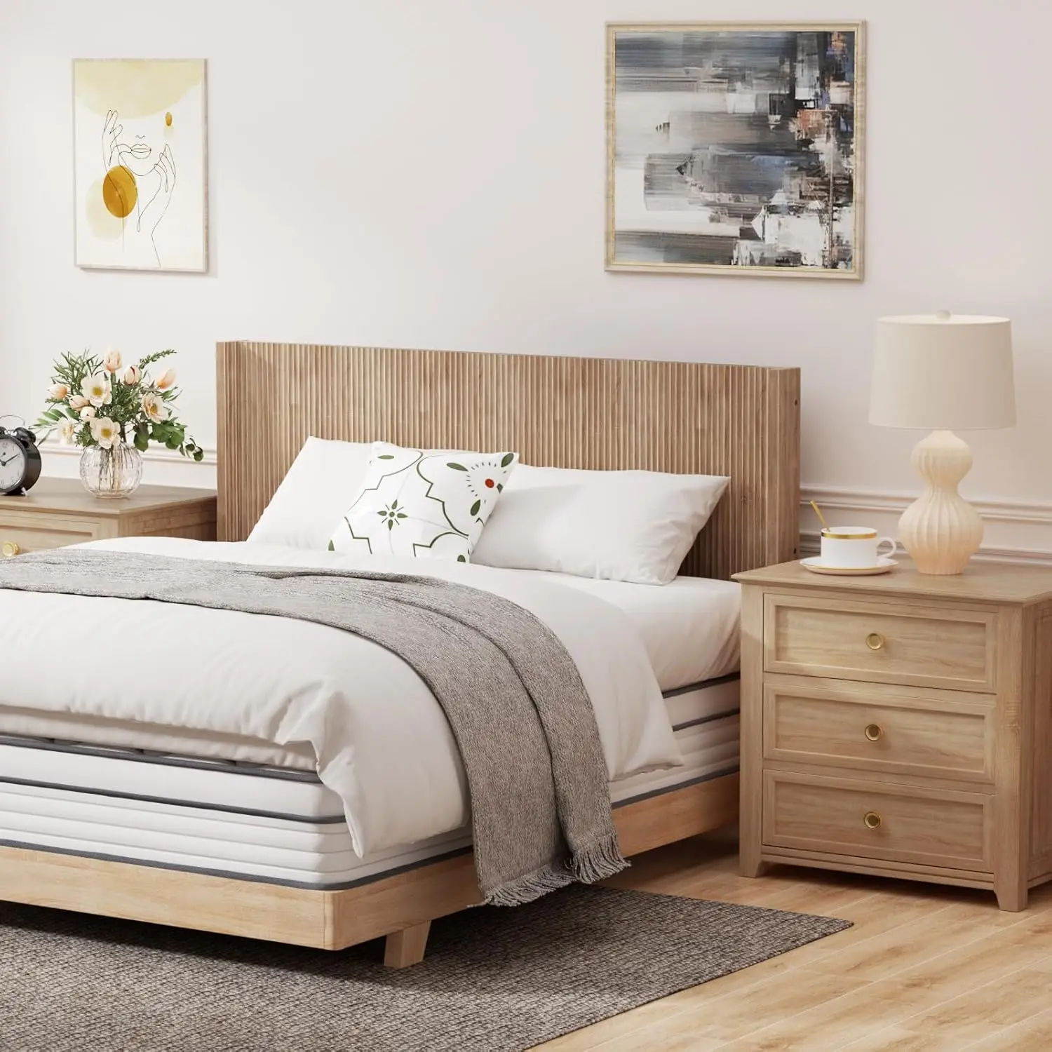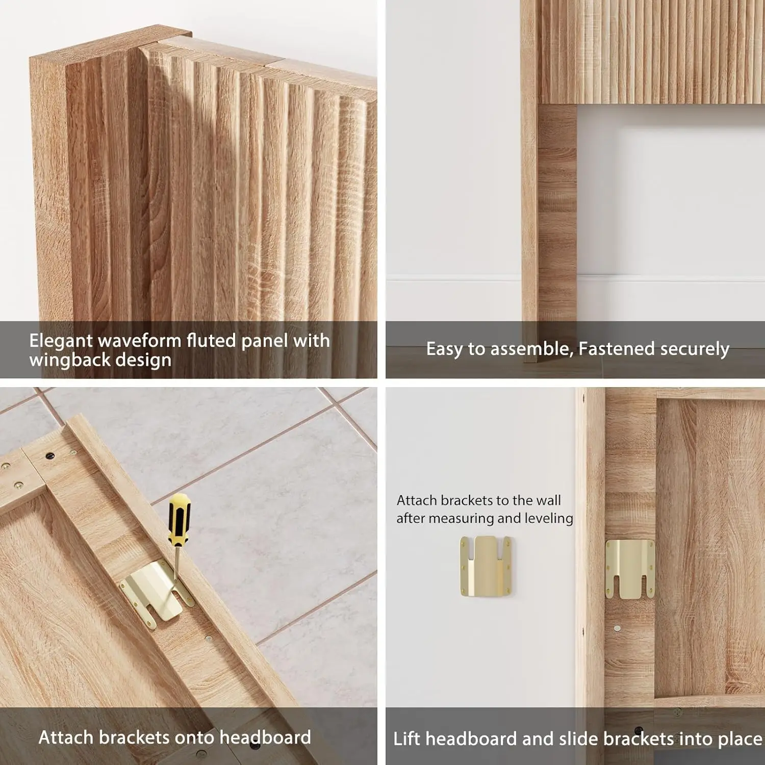 • 【Easy to Install】 Delivered in a neat package with four panels, simply piece together to create a wide panel. The modern fluted wall mount headboard comes with detailed instructions, numbered parts for ensuring quick installation and hassle-free setup. Mattress and foundation/box spring available, sold separately.