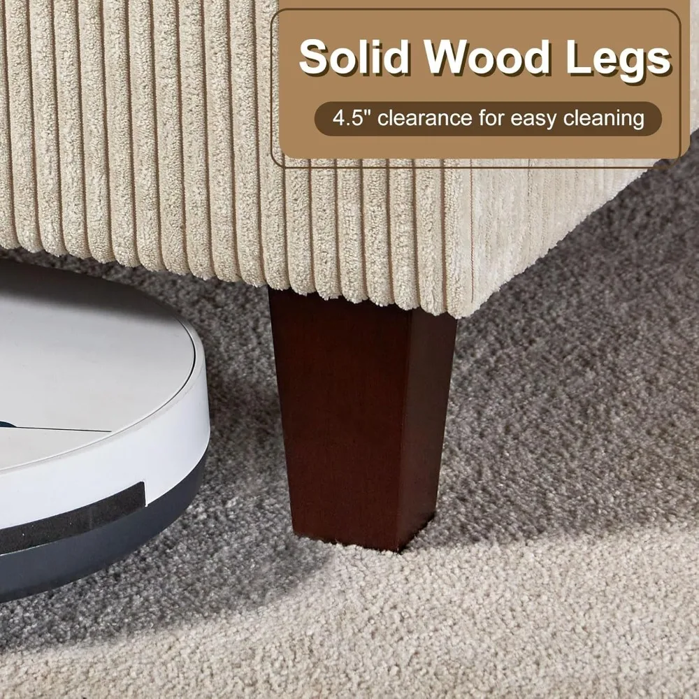 This product features an elegant design with clean lines, using corduroy fabric for the headboard, footboard, and rails, all supported by walnut-colored legs to enhance the aesthetic of your bedroom. The winged headboard measures 50.8 inches and boasts vertical channel tufting in a soft fabric for excellent neck and back support, with 2.7-inch thick wings that add a distinctive and traditional look. The bed is equipped with solid wood legs, crafted from durable hardwood in a square-tapered design, and stands at a height of 4.5 inches, making it easy to clean underneath with a robotic vacuum cleaner. The bed is sturdy and silent, with a center support and legs for stability, capable of supporting up to 1000 pounds. It comes with 12 wood slats that support the mattress without the need for a box spring, ensuring a peaceful sleep with EVA foam. Assembly is manageable for two adults and takes approximately 1.5 hours, with all necessary hardware included. The product also offers responsive customer service, addressing any issues within 12 hours.