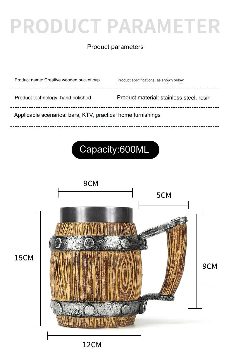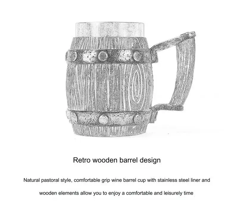 Large Capacity: 21 ounces /600ml. It can be used as a wood medieval mug, stylish renaissance beer barrel mug, grooms or groomsmen gift wood mugs, tankard or stein for beer, coffee, tea or other cold and hot drinks. We love to create fun & awesome mugs for men!