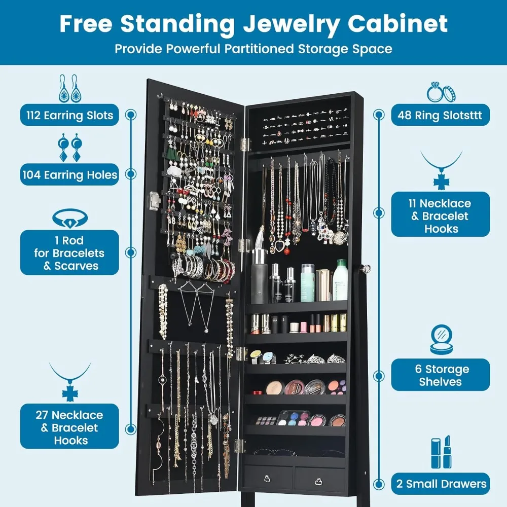 - [4 Adjustable Angles]This mirror cabinet has four adjustable and fixed angles, it won't easily tip over or rotate backwards, you can rotate the mirror cabinet to find the most comfortable angle. Ideal for dressing up before you go out, it's easy to access your jewelry and accessories as well as look in the mirror to see what you're wearing.
