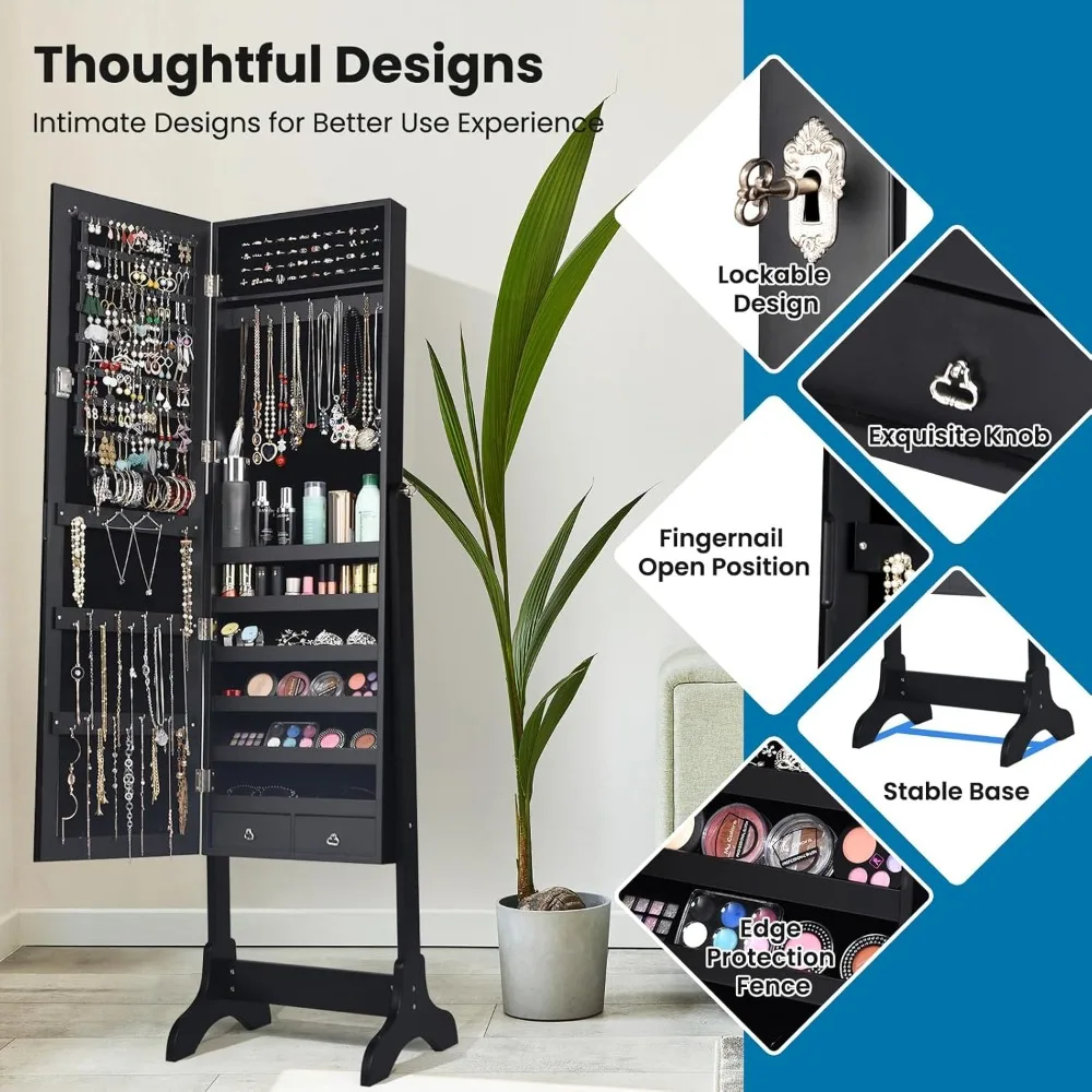 - [Lockable to Keep Jewelry Safe]This jewelry armoire can be locked with a key, creating a safe space for your jewelry and keeping it out of the reach of children and pets. The delicate locking hole and vintage style key are not only practical but also add elegance to the jewelry cabinet.