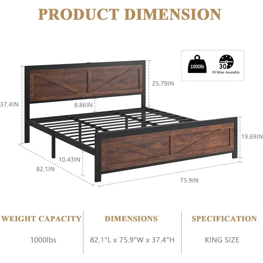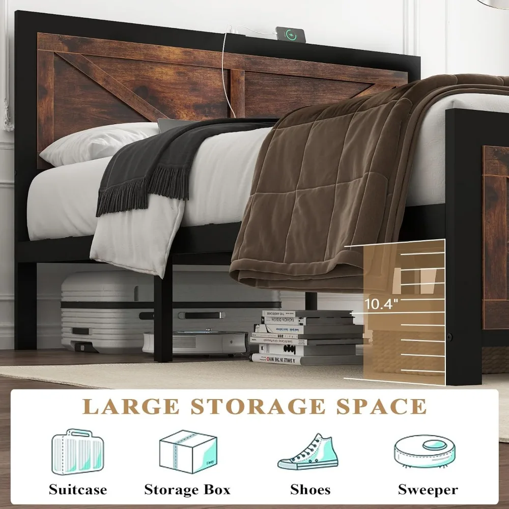 - HEADBOARD WITH CHARGING STATION: The wooden farmhouse bed frame with headboard features a built-in USB and Type-C port for easy device charging without leaving the comfort of your bed. Practical and handy, in addition to keeping your mobile phones, tablets and other electronics charged at all times out of reach or using the built-in reading light.