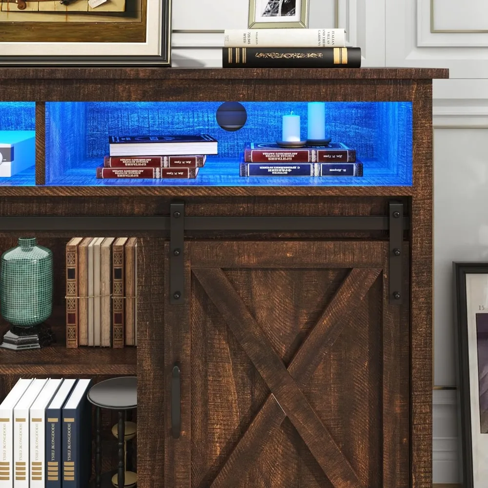 • 【Hidden Storage Adjustable Shelves】The farmhouse entertainment center stand is equipped with side open adjustable center shelves. This wood TV stand futures farmhouse cabinets offer ample concealed storage space for your desire for neatness.