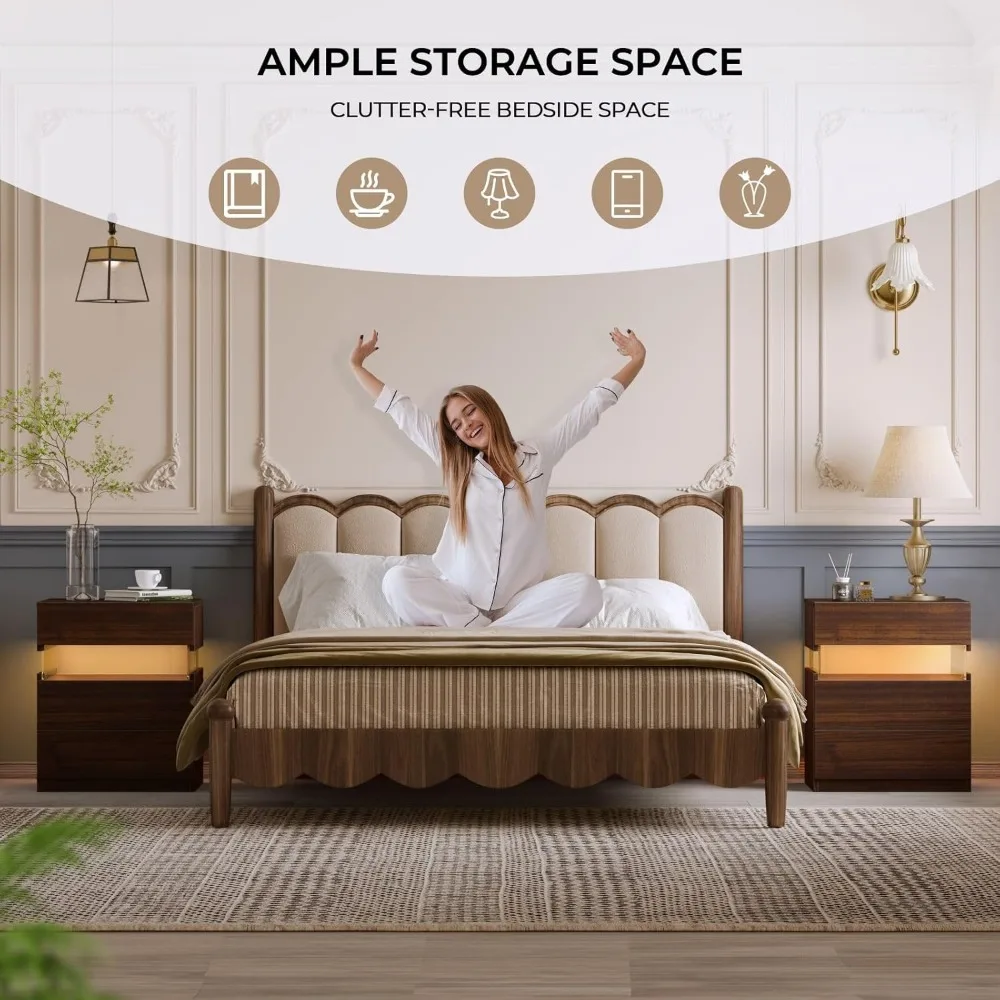 - 【LED Light Nightstand】- The color of the light strip is variable according to needs and scenes. It will look more beautiful when the light is in the dark. The beautiful LED light will make your home look more modern and fashionable.