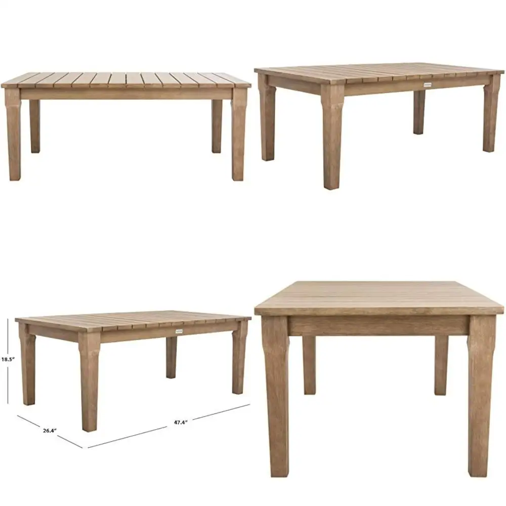Introducing an exquisite patio coffee table from Safavieh's Couture Collection, designed to transform your outdoor space into a lavish retreat. Crafted with a robust and elegant natural eucalyptus wood frame, this table is not only durable but also a feast for the eyes. It provides generous surface area, perfect for serving food, beverages, and showcasing decorative items. Measuring 47.4 inches in width, 26.4 inches in depth, and 18.5 inches in height, this coffee table is a statement piece that adds a touch of luxury and contemporary style to your home furnishings. Safavieh's Couture line is renowned for its blend of opulence and modern design, offering pieces that are both luxurious and sophisticated.